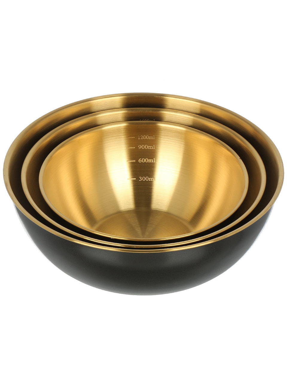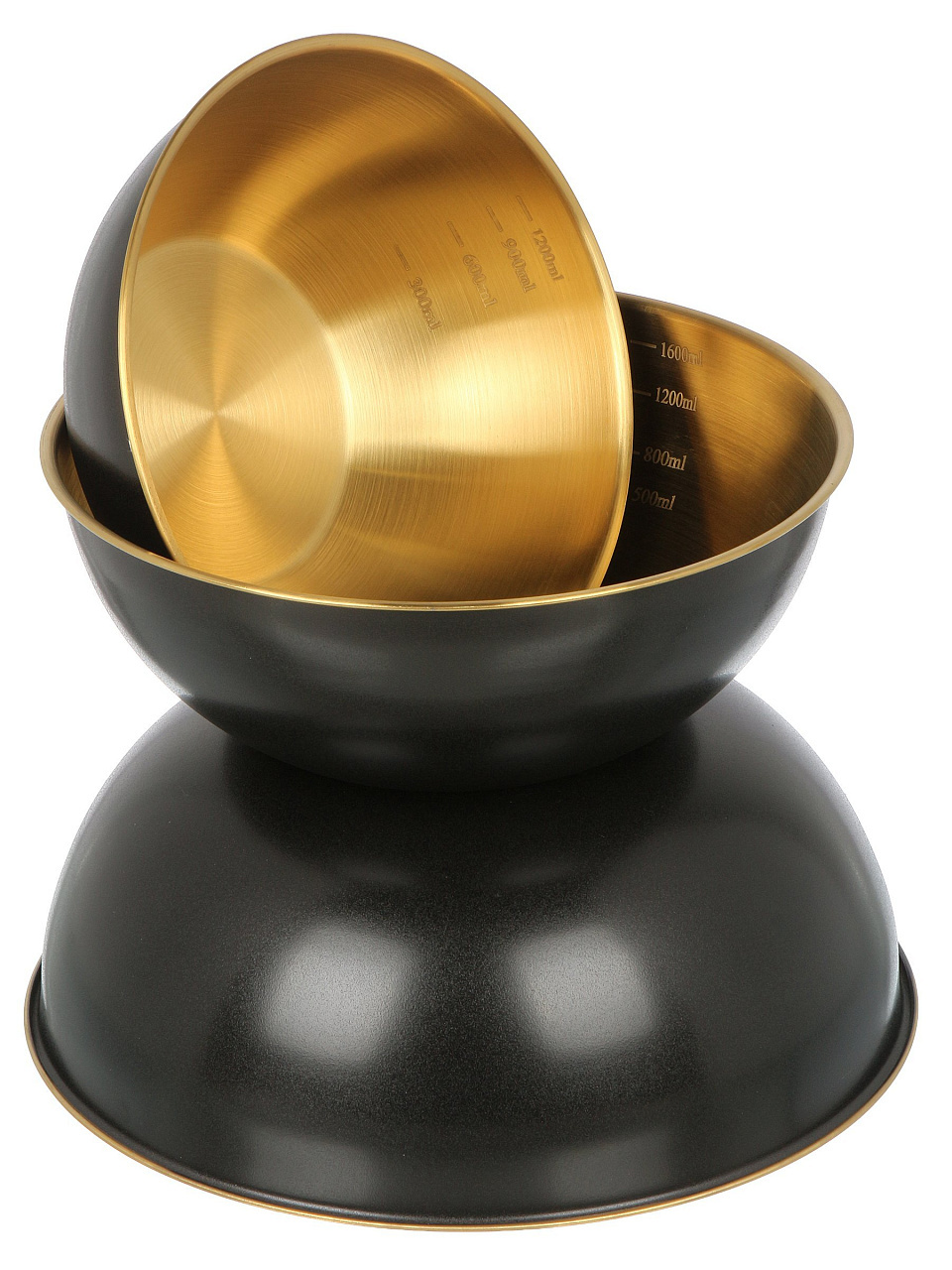 Набор мисок из нержавеющей стали «Черное золото» (3 шт: 19, 22, 25 см) — стильное решение для вашей кухни