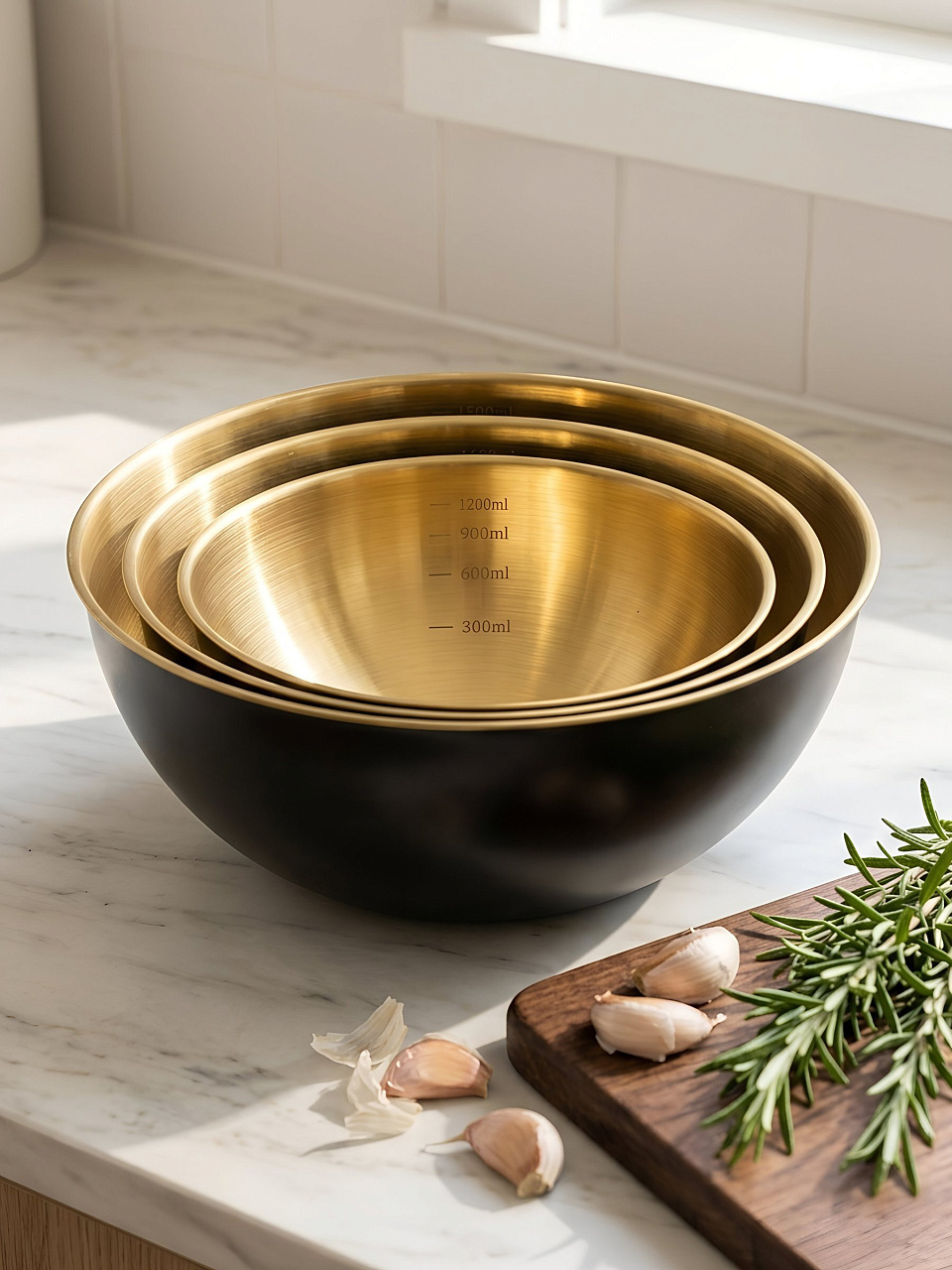 Обновите свой кухонный инвентарь прямо сейчас — закажите набор мисок «Черное золото» и оцените сочетание профессионального качества и эстетики в каждом движении. Добавьте в корзину сегодня, чтобы сделать процесс приготовления пищи комфортнее и приятнее.