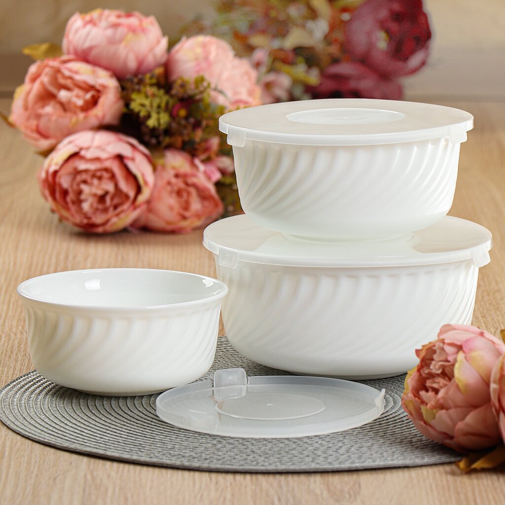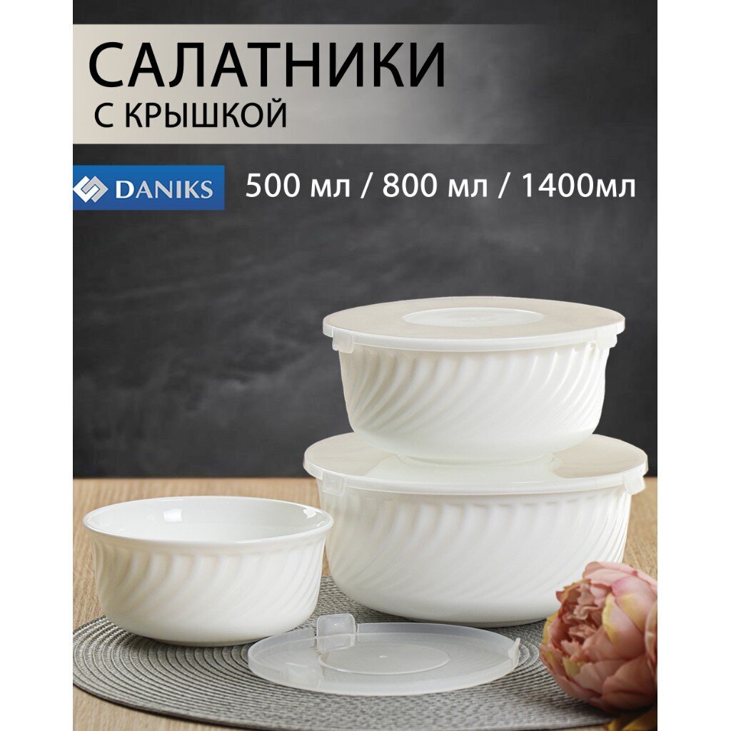 Набор салатников Daniks из стеклокерамики: 3 размера, крышки, подходит для СВЧ и посудомойки. Идеальное решение для кухни, дачи и подарка.