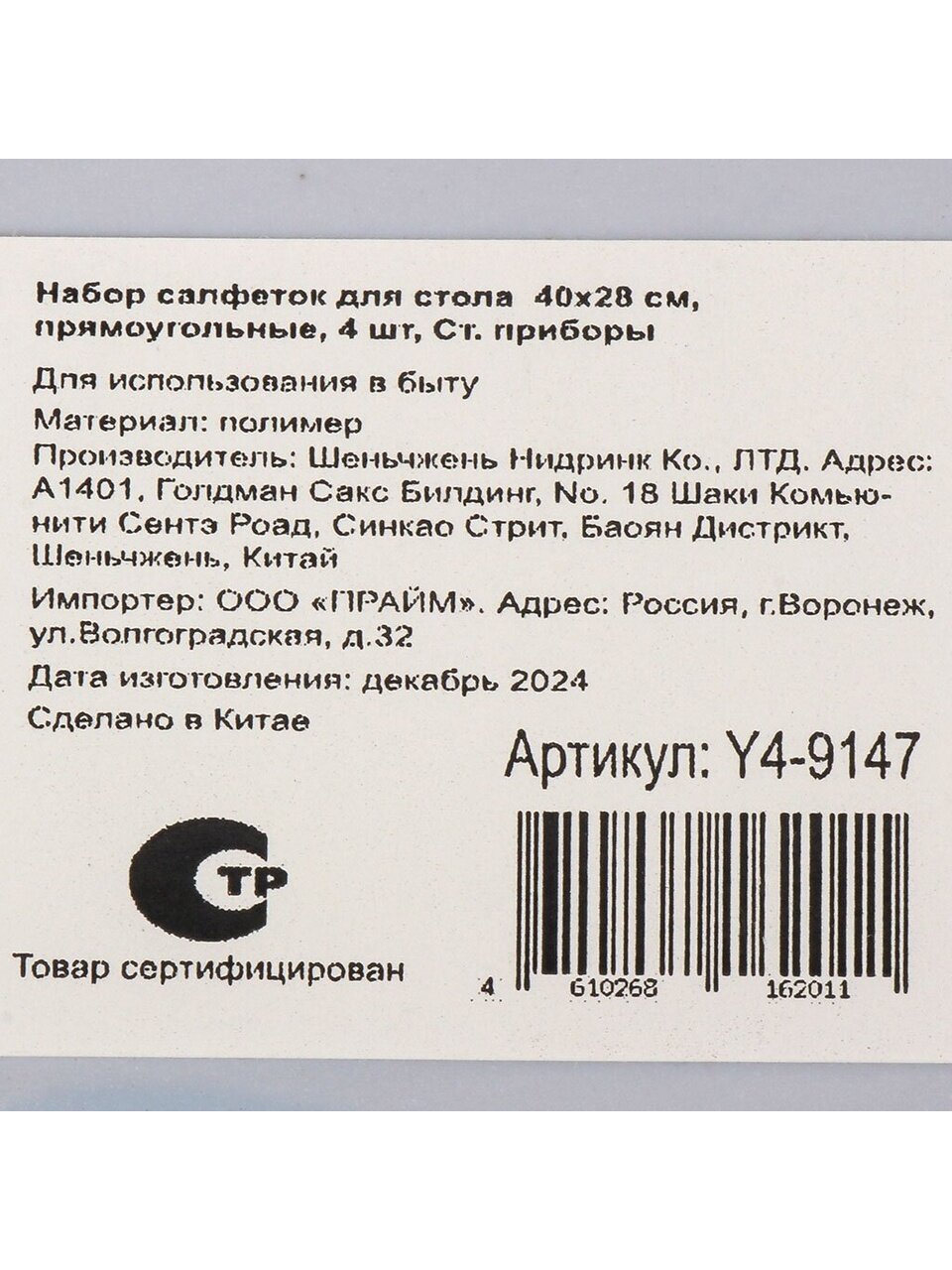 Вы можете приобрести «Набор салфеток пластик, 40х28 см, прямоугольный, 4 шт, для стола, Столовые приборы, Y4-9147» и другие товары в нашем интернет-магазине в Ярославле по низким ценам и с бесплатным самовывозом.
