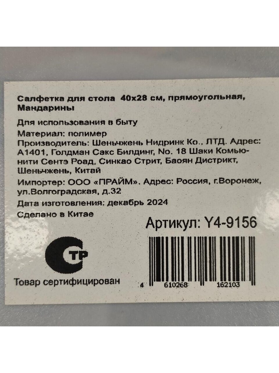 Вы можете приобрести «Салфетка для стола пластик, 40х28 см, прямоугольная, Мандарины, Y4-9156» и другие товары в нашем интернет-магазине в Ярославле по низким ценам и с бесплатным самовывозом.