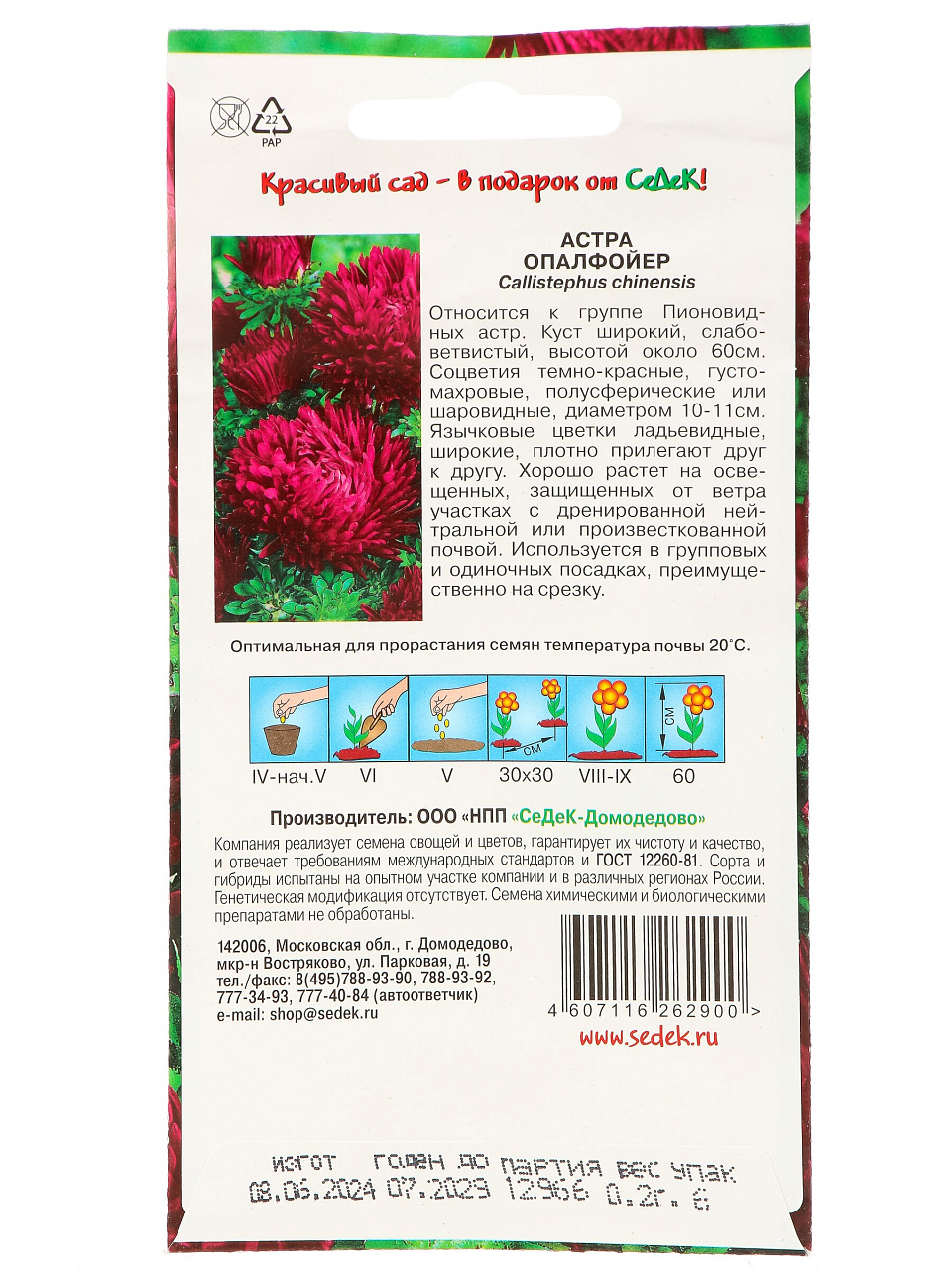 Вы можете приобрести «Семена Цветы, Астра, Опалфойер, 0.2 г, пионовидная, темно-красная, цветная упаковка, Седек» и другие товары в нашем интернет-магазине в Тамбове по низким ценам и с бесплатным самовывозом.