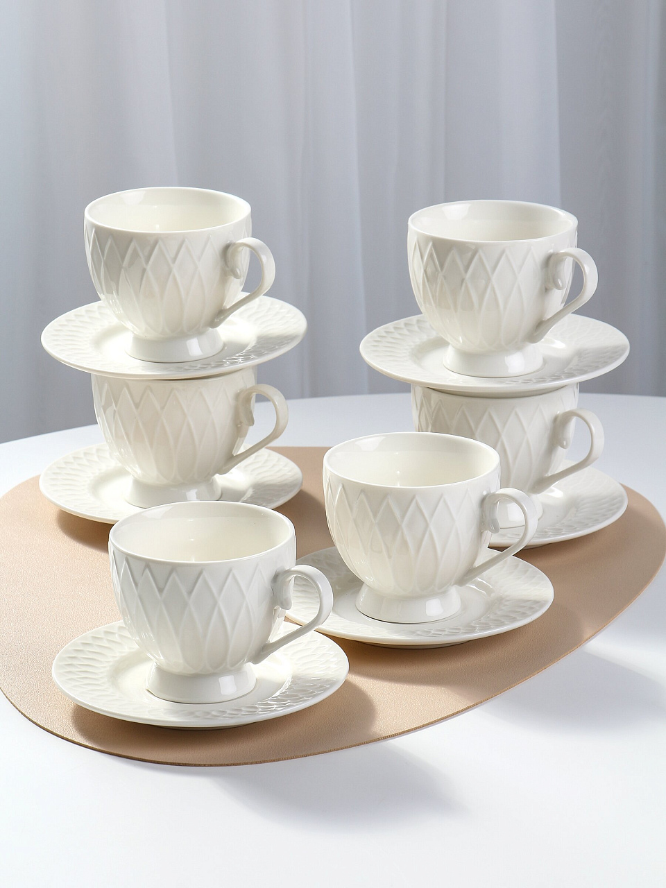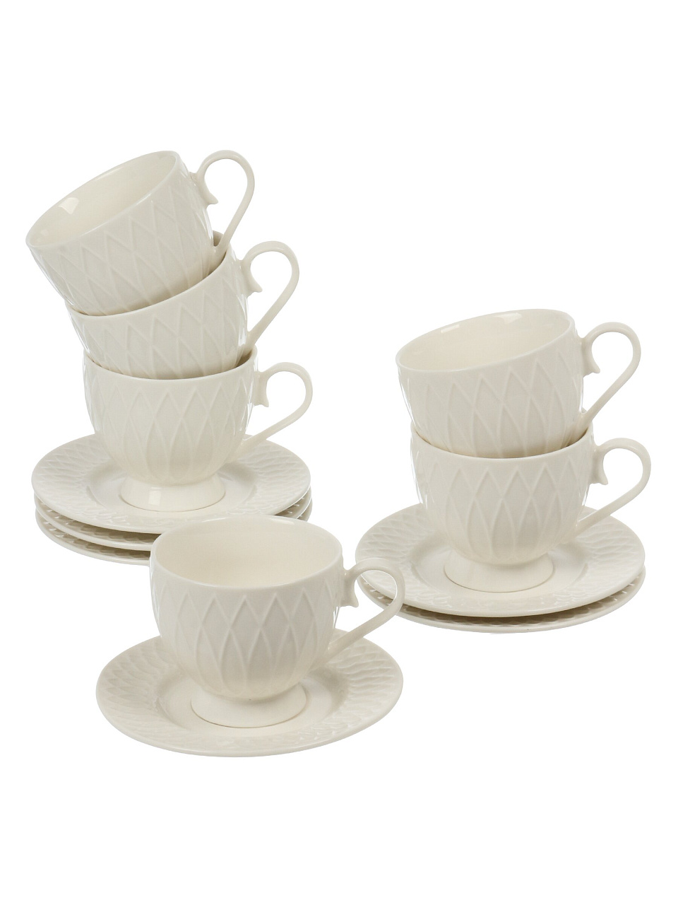 В наборе 12 предметов: 6 чашек объёмом 230 мл и 6 блюдец. Рассчитан на 6 персон.