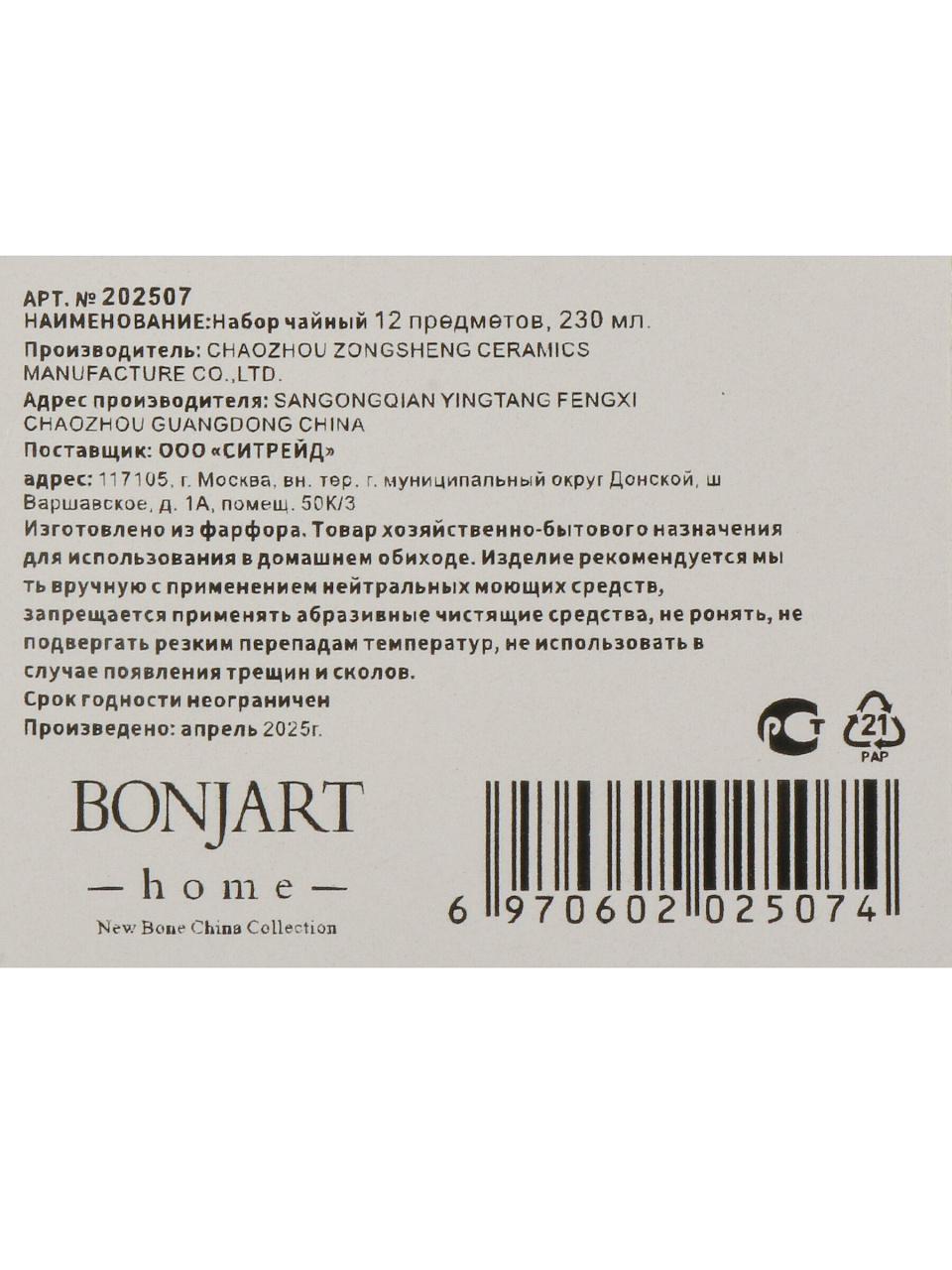 Вы можете приобрести «Набор чайный фарфор, 12 предметов, на 6 персон, 230 мл, Bonjart, ТМ Глория, 202507, подарочная упаковка» и другие товары в нашем интернет-магазине в Коврове по низким ценам и с бесплатным самовывозом.