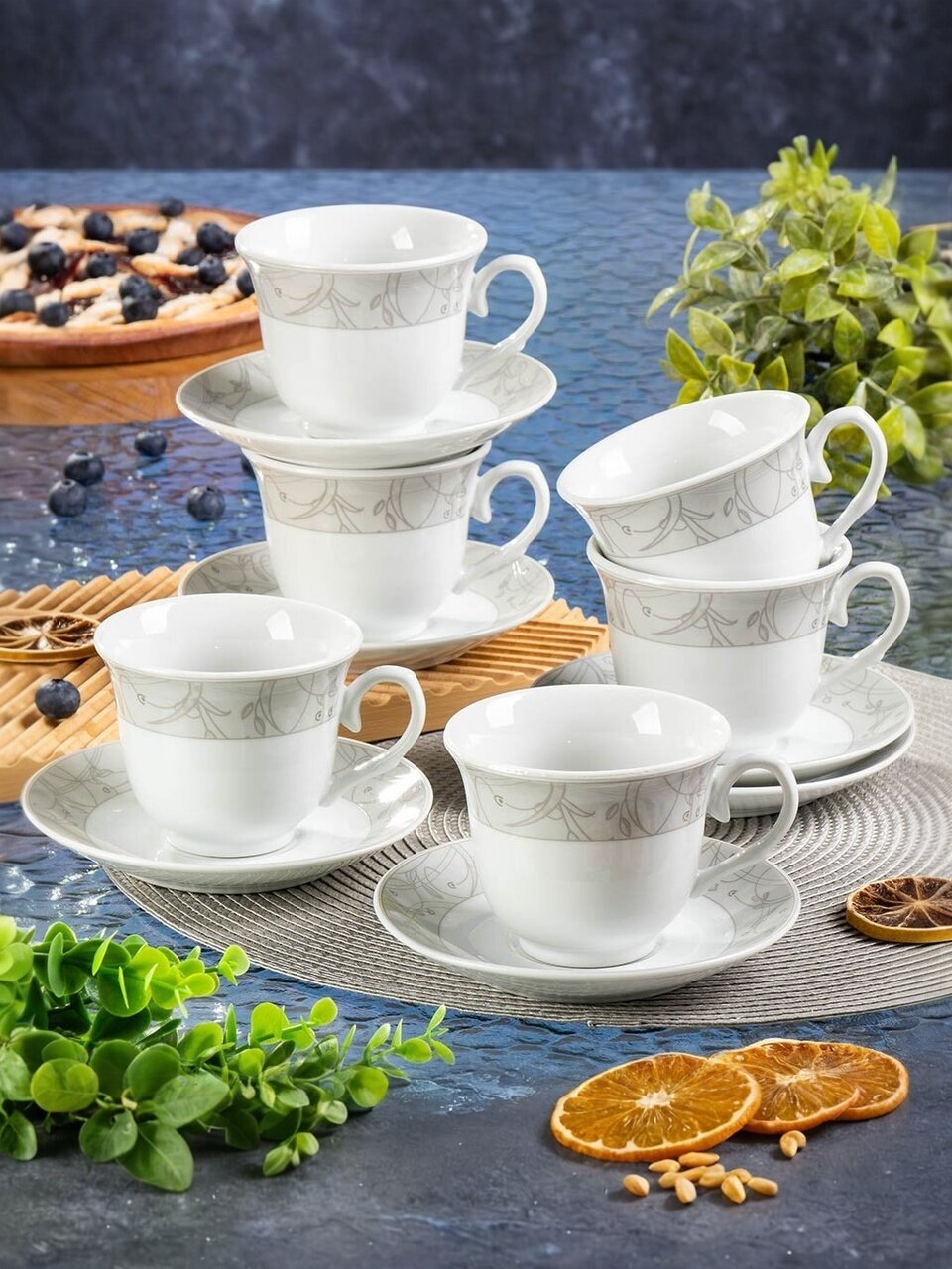 - В комплекте: 12 предметов — 6 чашек и 6 блюдец.