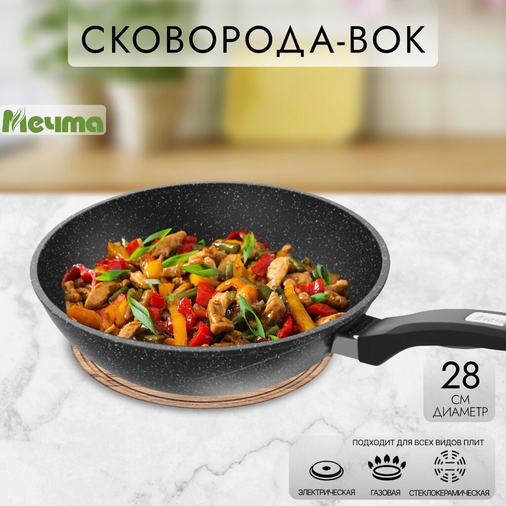 Сковорода-вок литой алюминий, 28 см, антипригарное покрытие, Мечта, Гранит black, 78802 - фото 1 от пользователя