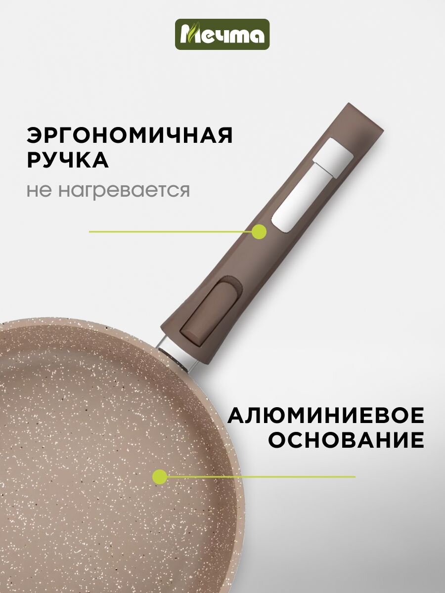 Вы можете приобрести «Сковорода литой алюминий, 22 см, антипригарное покрытие, Мечта, Premium, мокко, съемная ручка, 022902» и другие товары в нашем интернет-магазине в Орле по низким ценам и с бесплатным самовывозом.