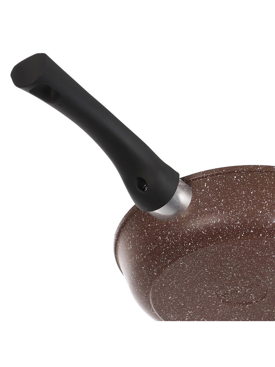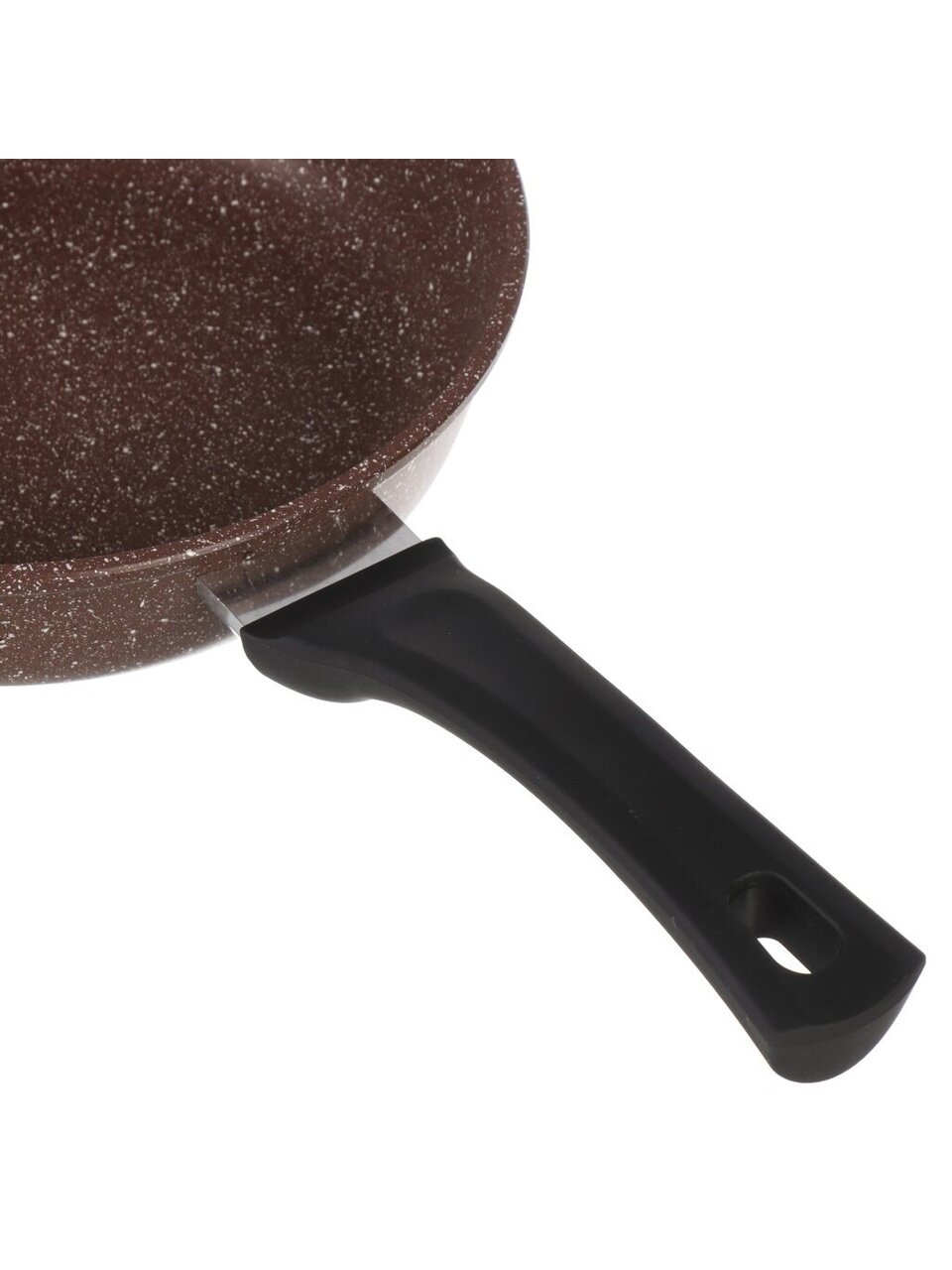 Сковорода Горница Шоколад 22 см — идеальное решение для тех, кто ищет антипригарную посуду из литого алюминия с мраморным покрытием: прочная, удобная, долговечная.