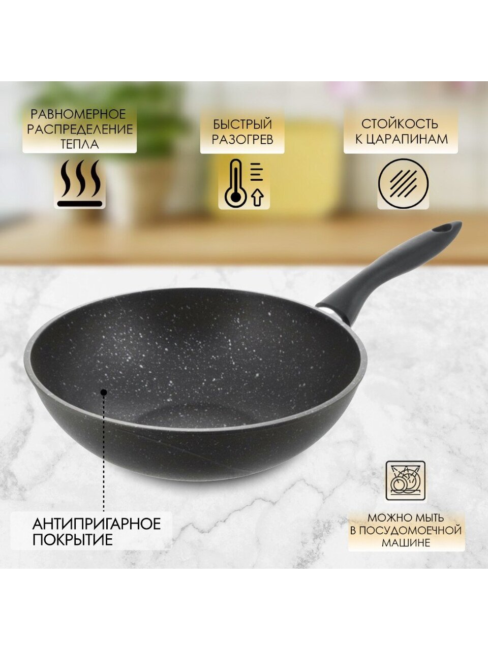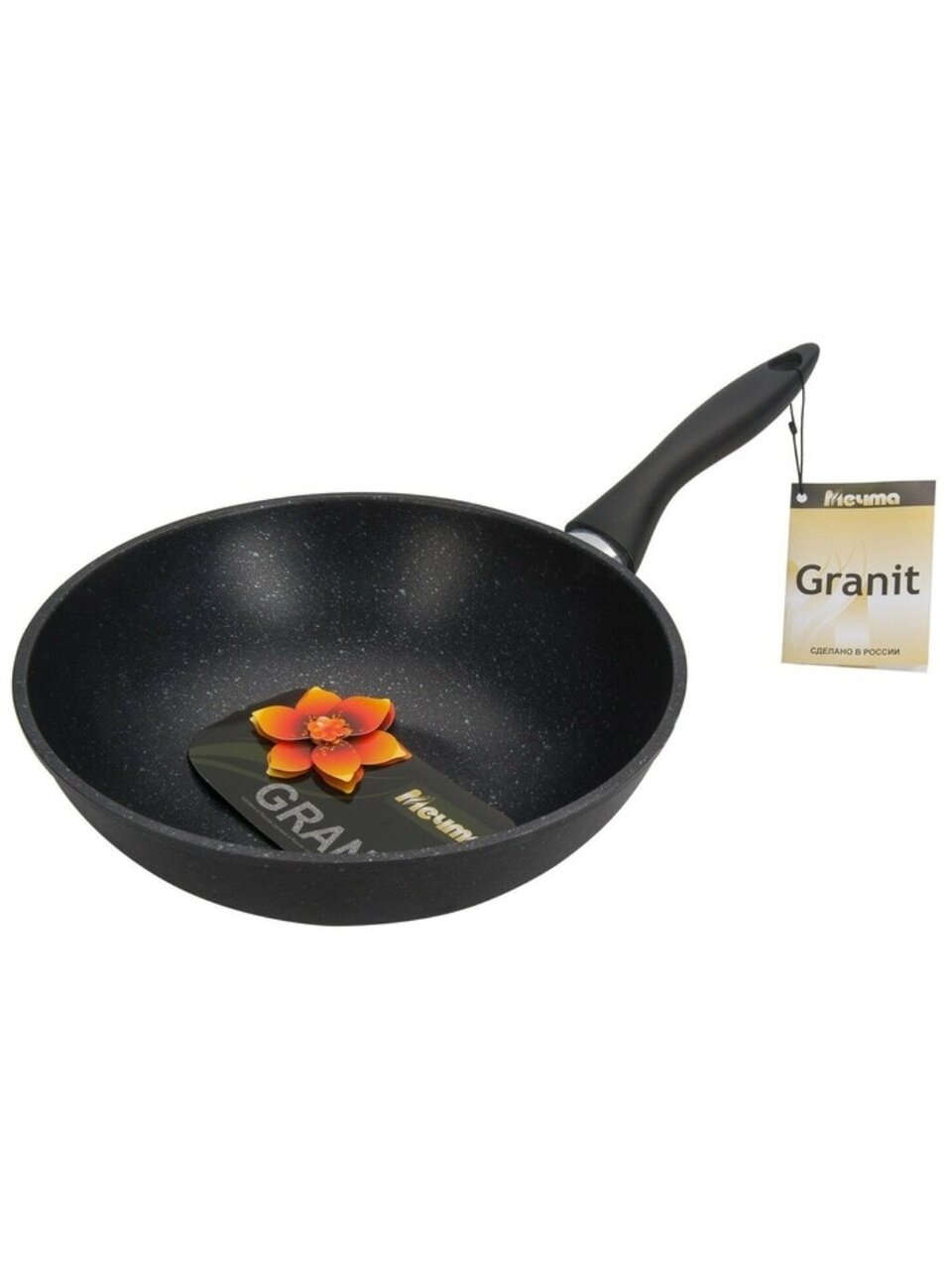 Сковорода-вок 28 см из литого алюминия с антипригарным гранитным покрытием Мечта Гранит 78701 — быстрое приготовление блюд без прилипания и лишнего масла.