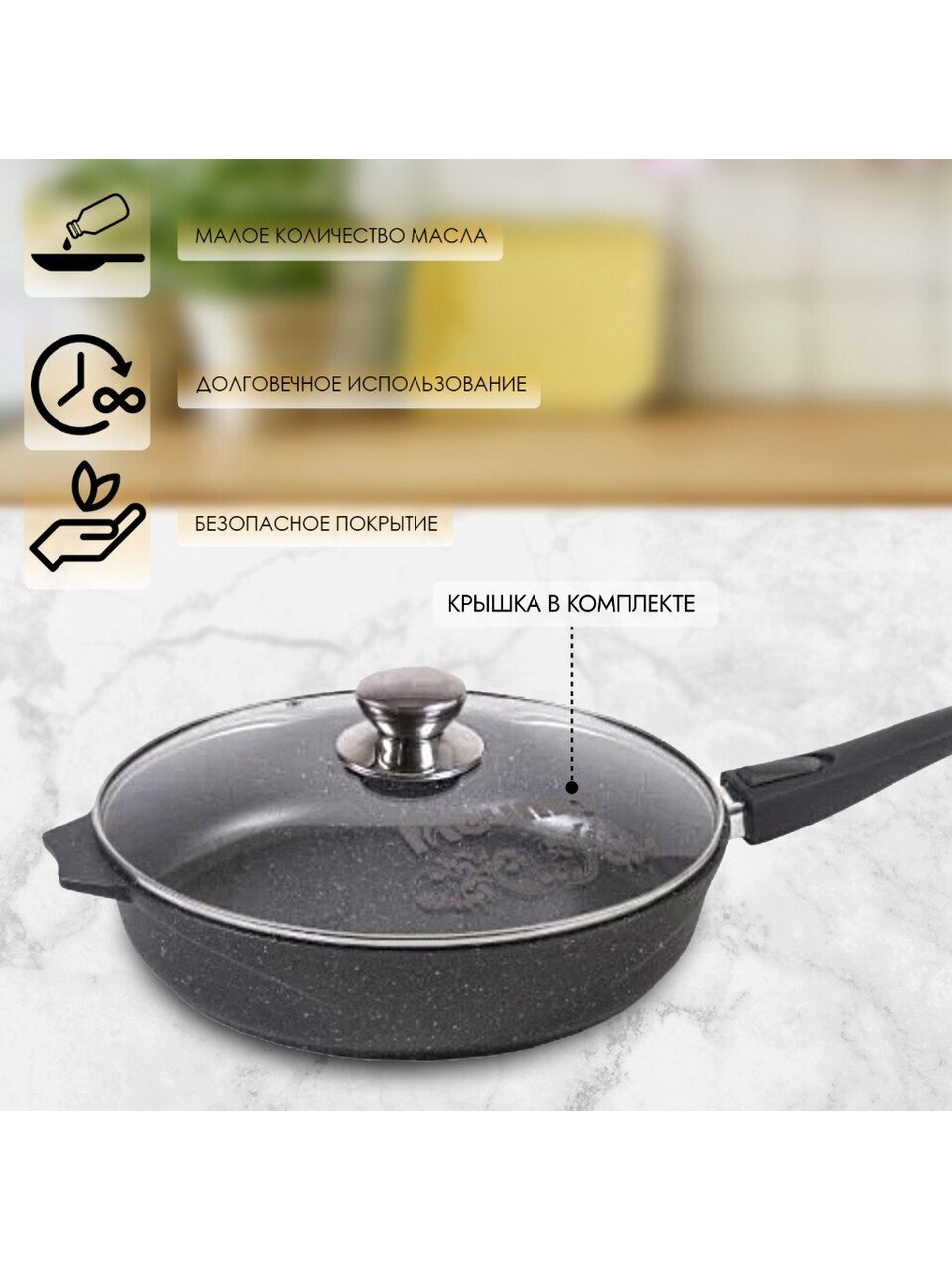 В сравнении с аналогами, эта сковорода выделяется не только прочностью и антипригарными свойствами, но и продуманной комплектацией: крышка в комплекте, ручка снимается одним движением, а гарантия производителя — 12 месяцев. Это идеальный вариант для тех, кто ценит качество, удобство и безопасность.