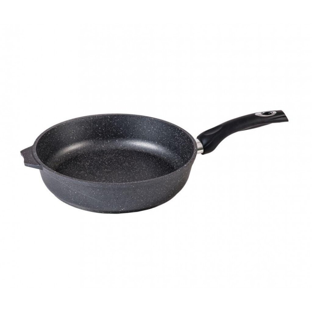 Гранитное покрытие предотвращает пригорание пищи, позволяет готовить с минимальным количеством масла и упрощает мытье — сковороду можно мыть в посудомоечной машине.