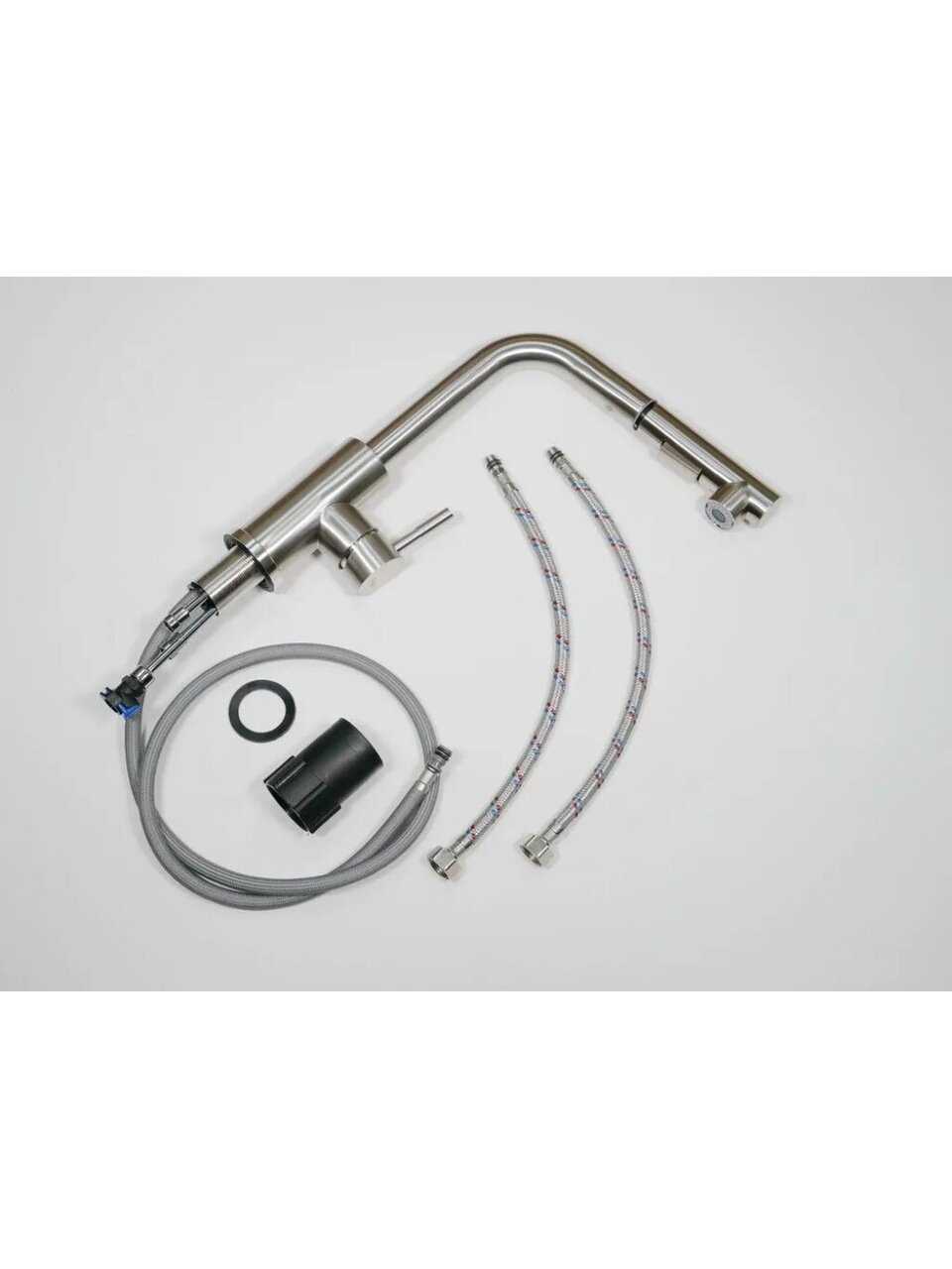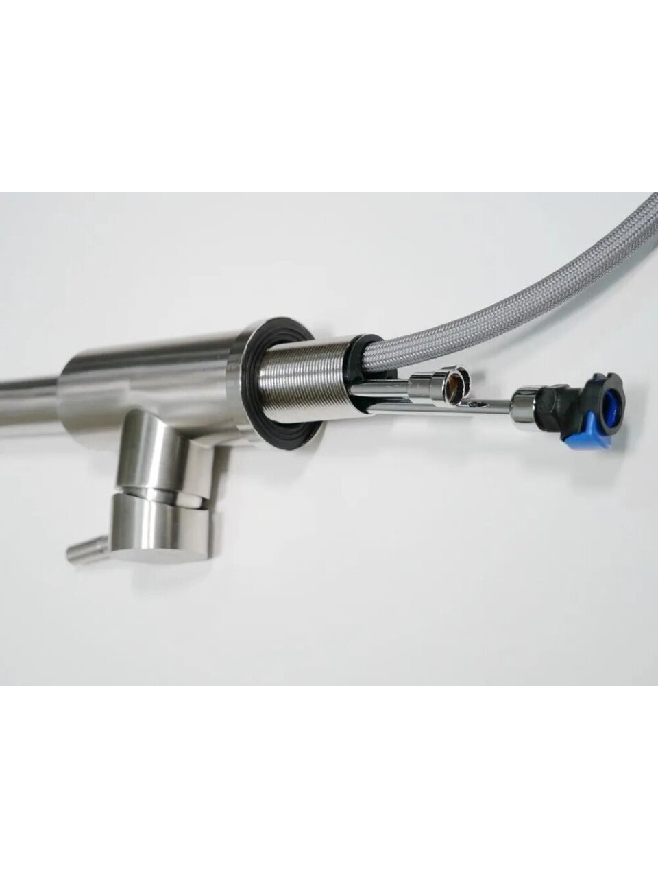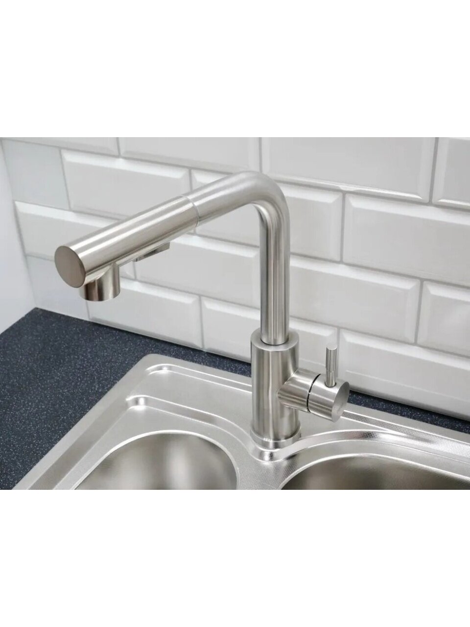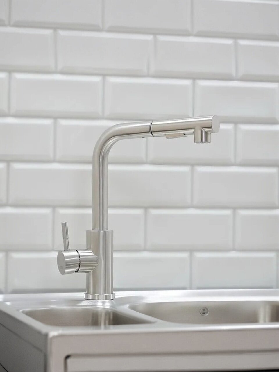 Как использовать выдвижной смеситель? Просто потяните излив на нужную длину и направьте поток воды туда, где это нужно — удобно для глубокой мойки или когда нужно набрать воду в высокий кувшин. Подходит ли этот кран для фильтра? В этой модели нет переключателя на фильтр, но она отлично справляется с бытовыми задачами и не требует сложного ухода.