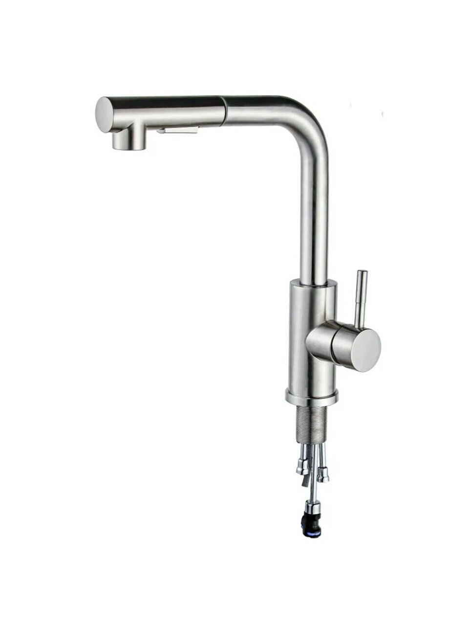 Смеситель Potato P0047S — это современное решение для кухни, где важны эргономика и надёжность. Выдвижной излив длиной 20 см обеспечивает свободу движений, что удобно при мытье овощей, крупной посуды или наполнении кастрюль. Корпус выполнен из нержавеющей стали, что гарантирует устойчивость к коррозии и простоту ухода. Матовая поверхность минимизирует появление разводов, что особенно актуально для частого использования.