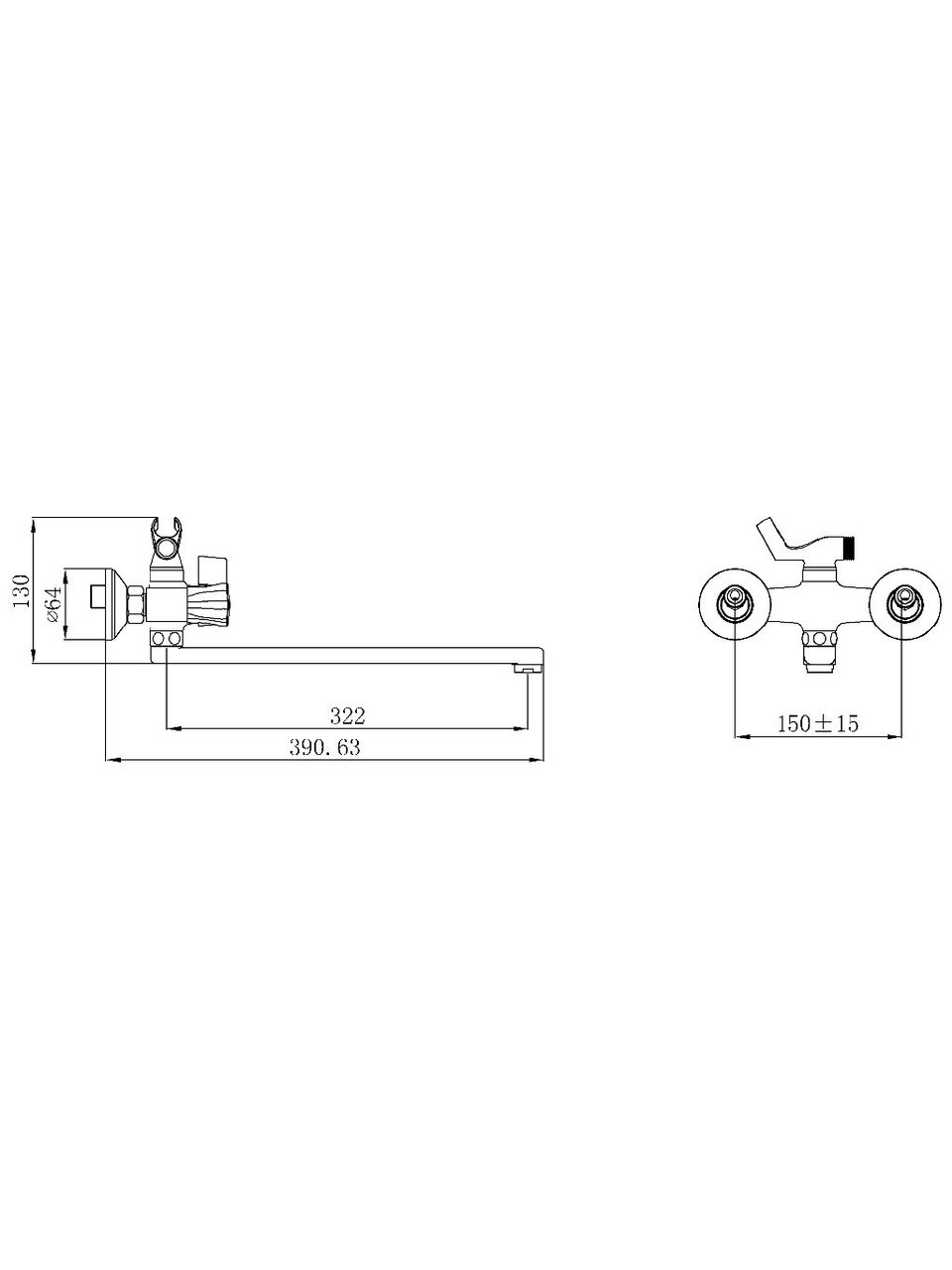 Межосевое расстояние — 150 мм, установка вертикальная, настенная, крепление на 2 отверстия, стандарт подводки — 1/2".