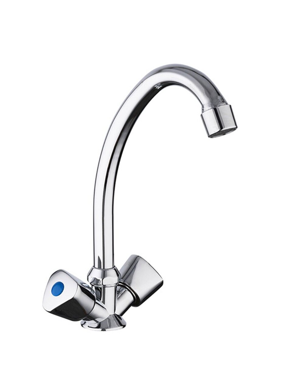 Смеситель для кухни Frud R40111: двухвентильный, хром, с высоким поворотным изливом 16,3 см — удобно мыть посуду, экономить воду, подходит для любой кухни.