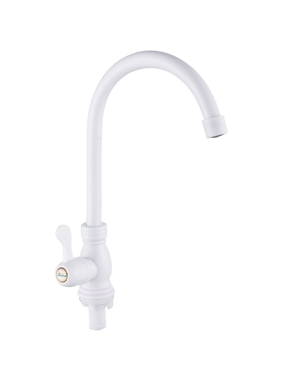 Часто спрашивают, чем отличается пластиковый смеситель от металлического. Пластик легче, не ржавеет и стоит дешевле, что выгодно при временном использовании или частых переездах. Высокий поворотный излив (18,4 см) обеспечивает удобство мытья крупной посуды, а аэратор экономит воду без потери напора. Если интересует, подходит ли смеситель для фильтра или проточного водонагревателя — данная модель рассчитана только на одну воду и не оснащена дополнительными переключателями.