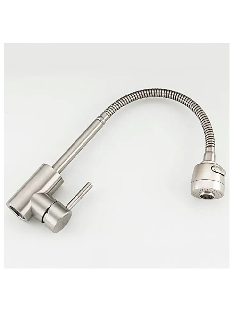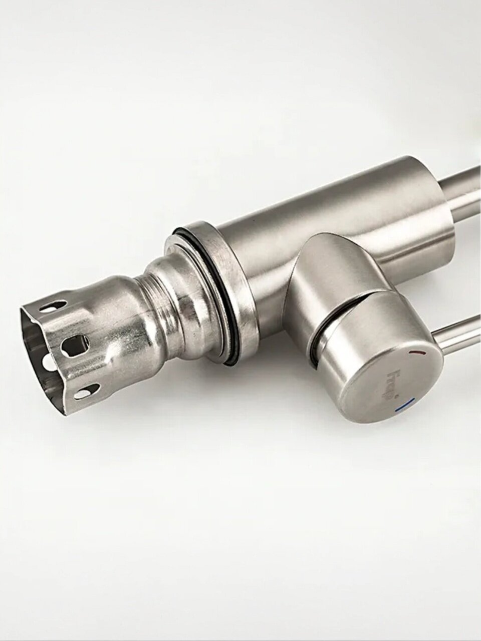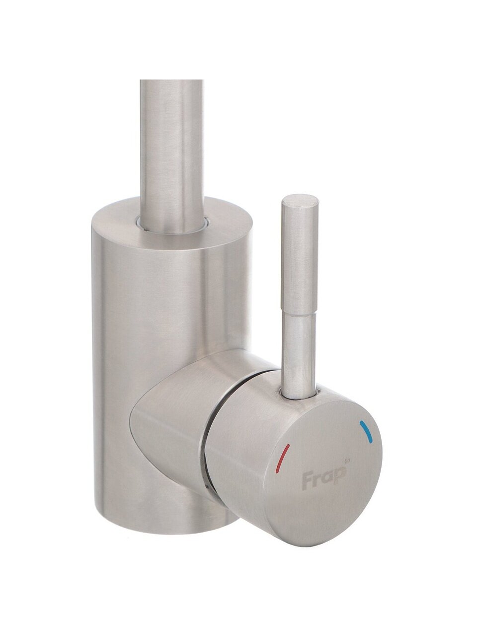 В отличие от классических моделей с коротким или фиксированным изливом, этот смеситель оснащён лейкой и гибкой подводкой, что делает его особенно удобным для дачи или семей с детьми. Матовая сатиновая поверхность устойчива к отпечаткам и легко очищается. Если вы задаётесь вопросом, как выбрать смеситель для кухни с высоким изливом, обратите внимание на Frap F44899-1 — он подходит для любых стандартных моек с одним отверстием (54 мм).