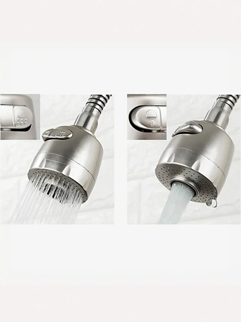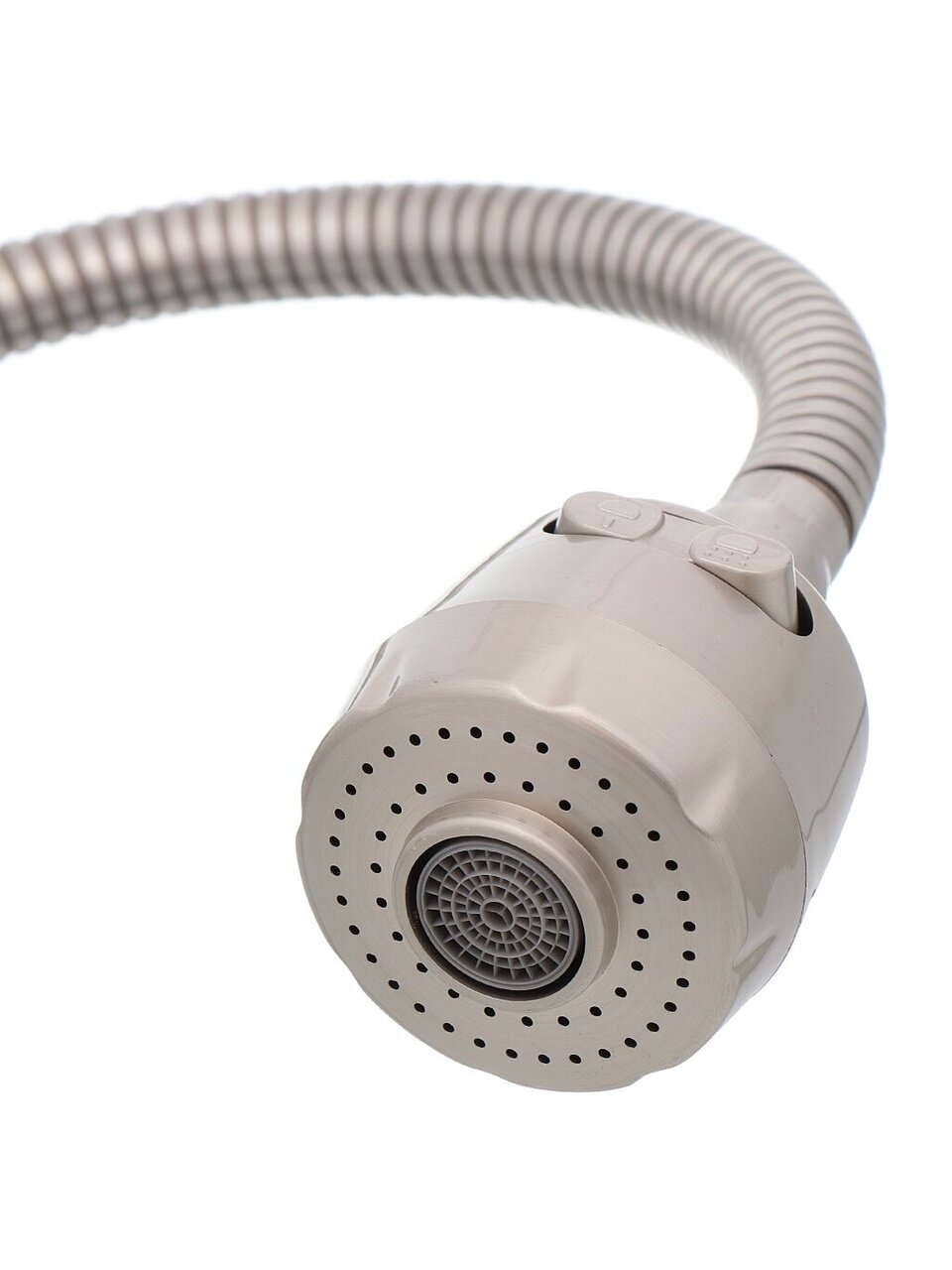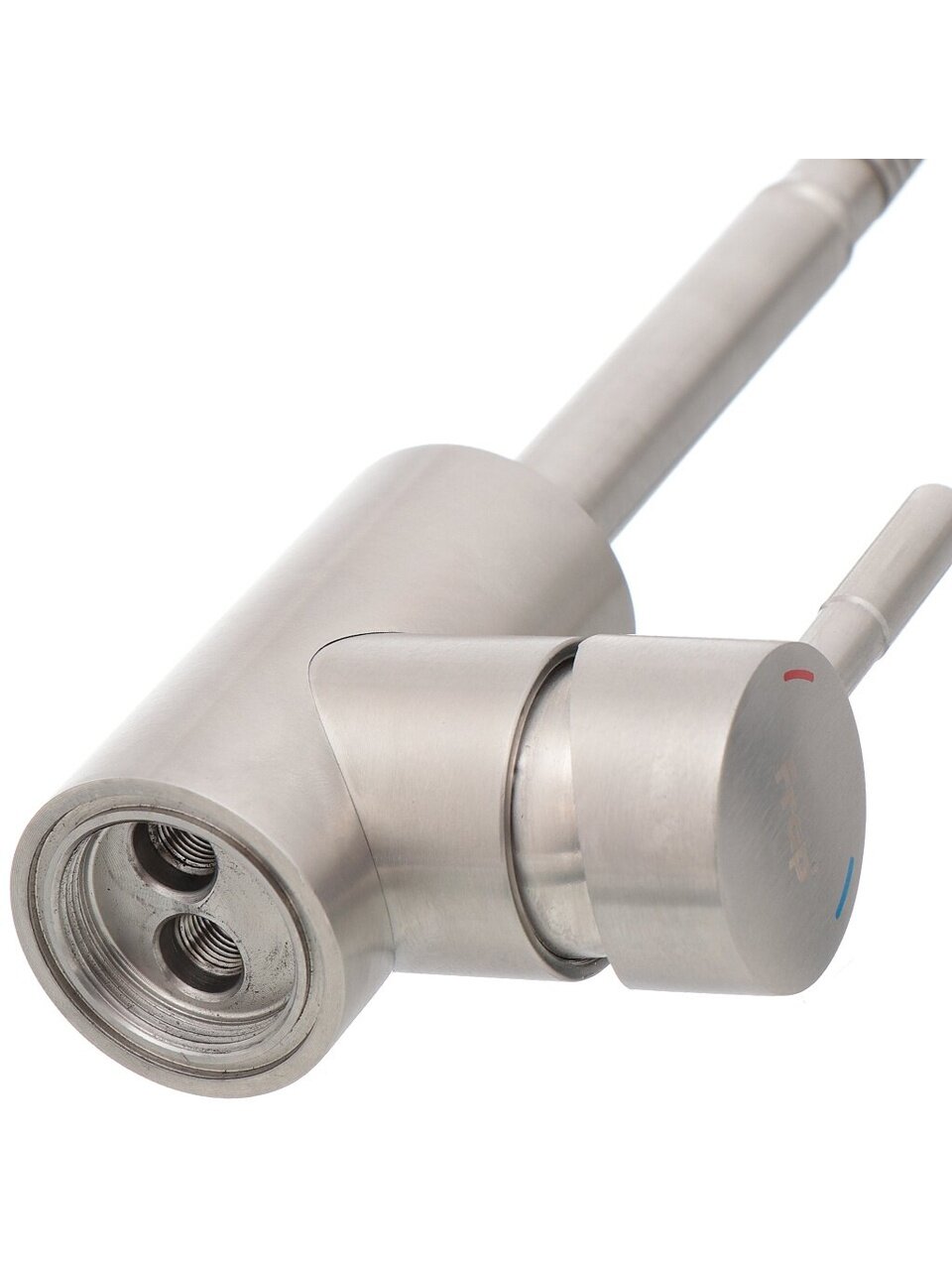 В отличие от классических моделей с коротким или фиксированным изливом, этот смеситель оснащён лейкой и гибкой подводкой, что делает его особенно удобным для дачи или семей с детьми. Матовая сатиновая поверхность устойчива к отпечаткам и легко очищается. Если вы задаётесь вопросом, как выбрать смеситель для кухни с высоким изливом, обратите внимание на Frap F44899-1 — он подходит для любых стандартных моек с одним отверстием (54 мм).