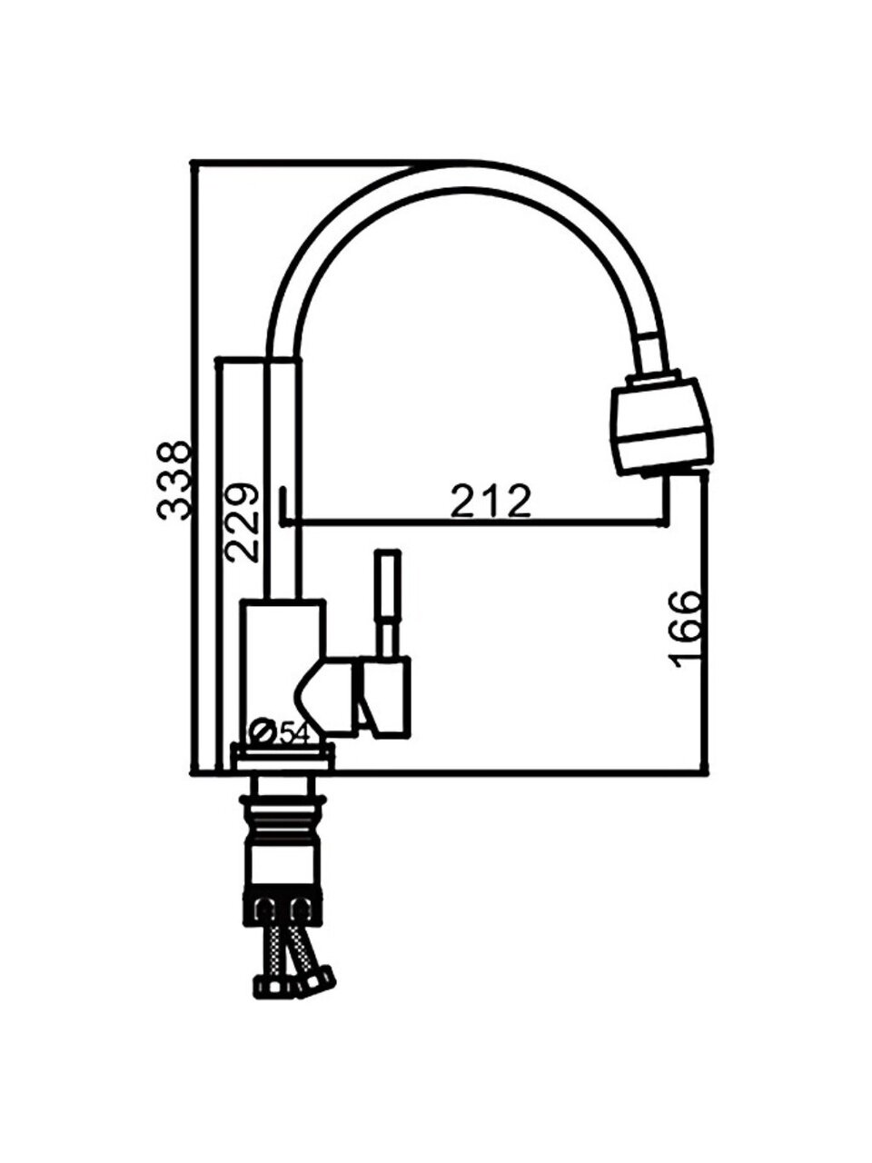 Для монтажа требуется одно отверстие диаметром 54 мм, стандарт подключения шлангов — 1/2".
