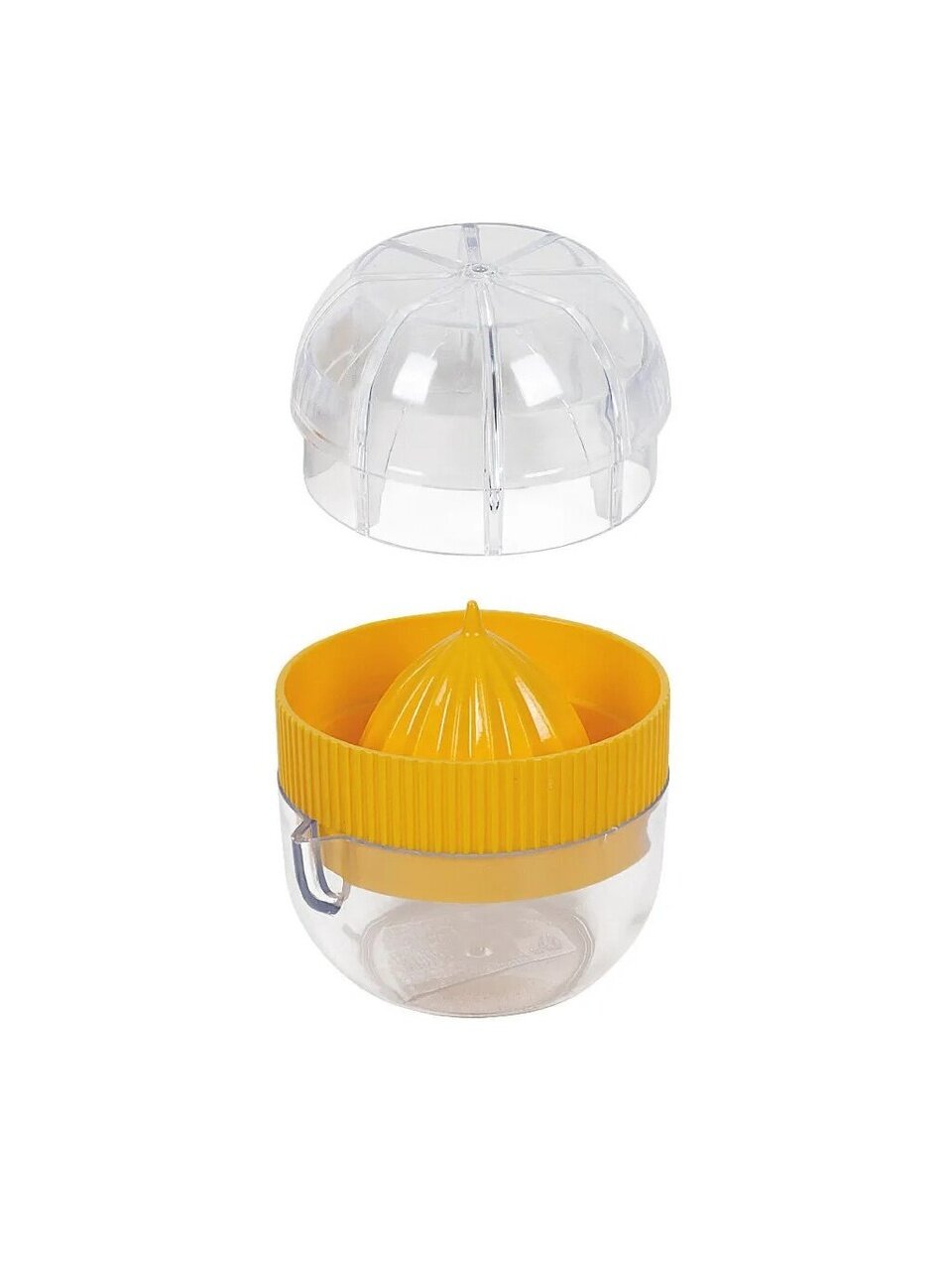 Разрезанный фрукт необходимо вставить в крышку и совершать вращательные движения вокруг ребристого конуса. Сок будет скапливаться в поддоне, из которого затем его легко слить. Изделие изготавливается из безопасного материала, химически нейтрального и разрешенного для контакта с пищевыми продуктами.