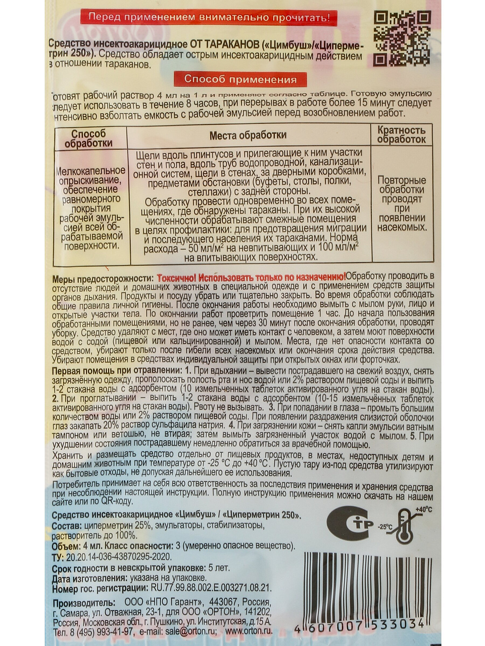 Инсектицид Ортон 4 мл — концентрат для эффективного уничтожения тараканов дома и на даче. Быстрое действие, экономичный расход, надёжный результат.