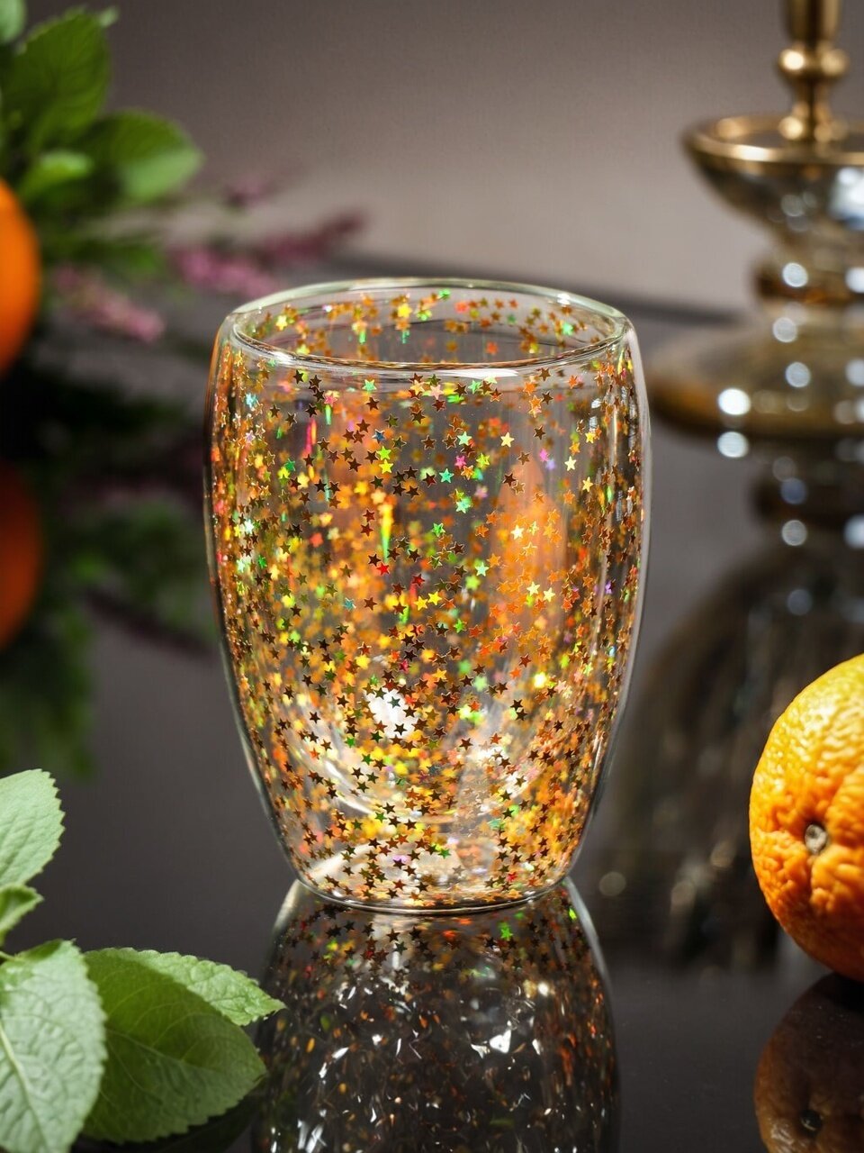 Многие спрашивают, чем отличается стакан с двойными стенками от обычного. Такой стакан защищает руки от ожога, не нагревается снаружи и дольше сохраняет вкус напитка. Не рекомендуется мыть в посудомоечной машине, чтобы сохранить целостность стеклянных стенок. Если ищете, как использовать стакан для подарка или для дачи — универсальный дизайн и золотой цвет делают его отличным решением для любого случая.