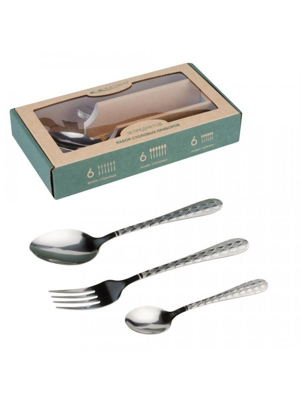 Набор столовых приборов из нержавеющей стали на 6 персон Катунь Офелия — 18 предметов для стильного сервирования и долговечности. Практичное решение для дома и дачи.