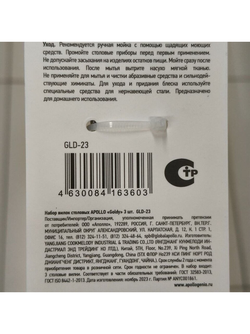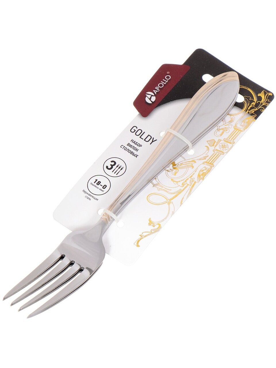 Вилка столовая Apollo Goldy GLD-23 — комплект 3 шт. из нержавеющей стали для стильной сервировки и долговечного использования дома и на даче.