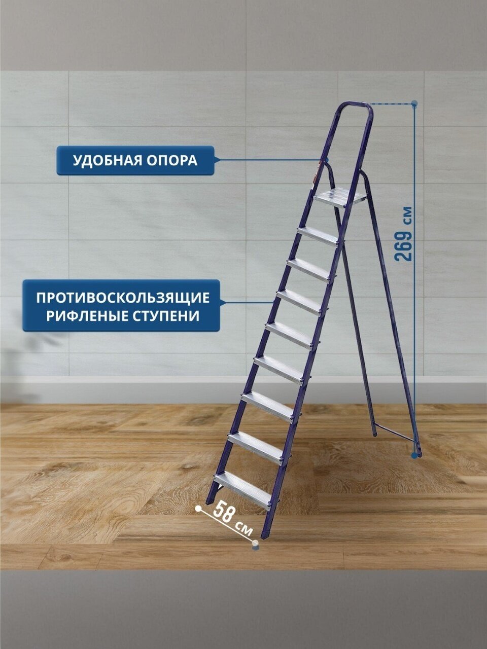 Вы можете приобрести «Стремянка 1 секция, 9 ступеней, сталь, 1.87 м, 150 кг, Alumet, М8409» и другие товары в нашем интернет-магазине в Старом Осколе по низким ценам и с бесплатным самовывозом.