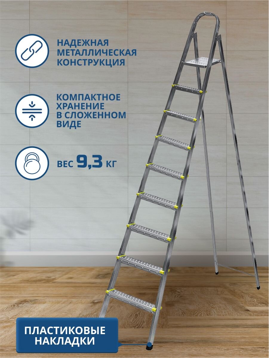 Стремянка 1 секция, 9 ступеней, металл, 1.98 м, 150 кг, Amigo, ЛС1009
