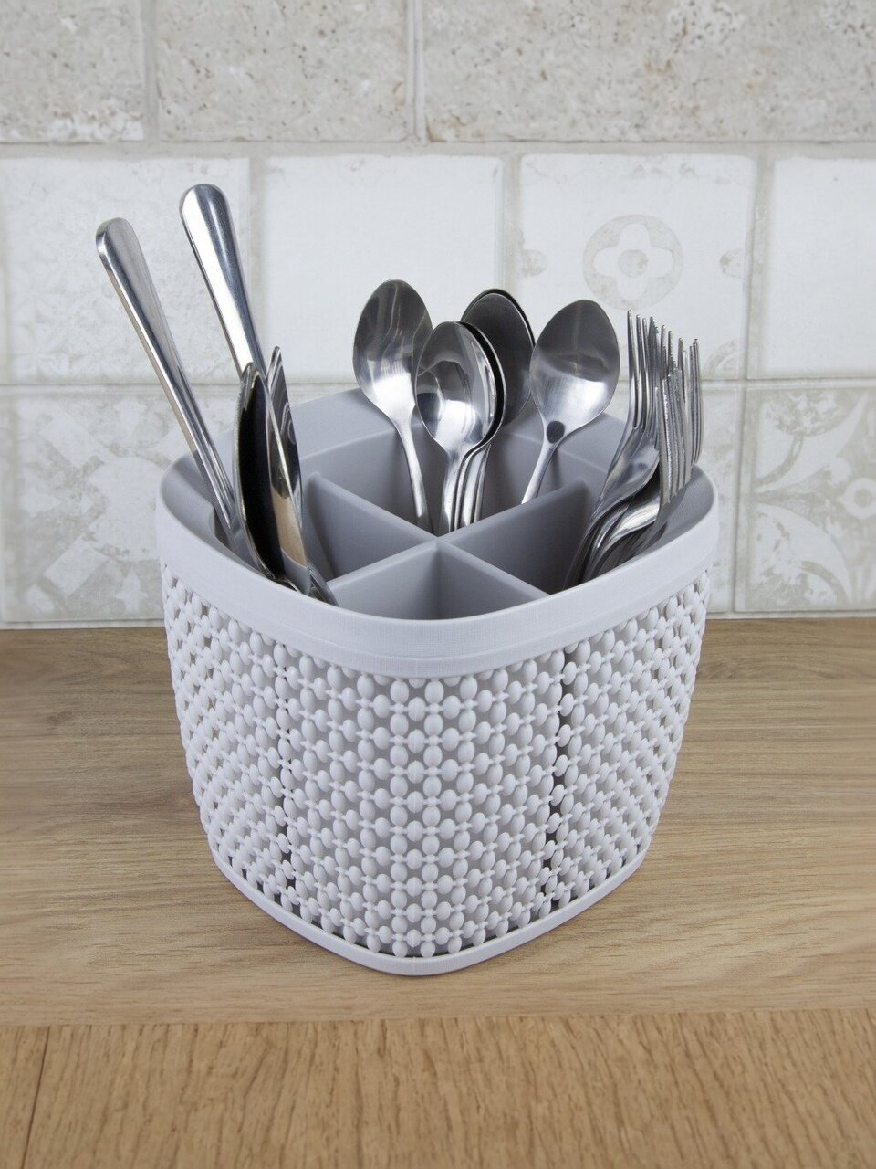 - Четыре секции позволят сушить или хранить столовые приборы по отдельности. Одна из секций меньше по глубине, что даёт возможность складывать в неё небольшие предметы, например, чайные ложки и они не "утонут" в отсеке;