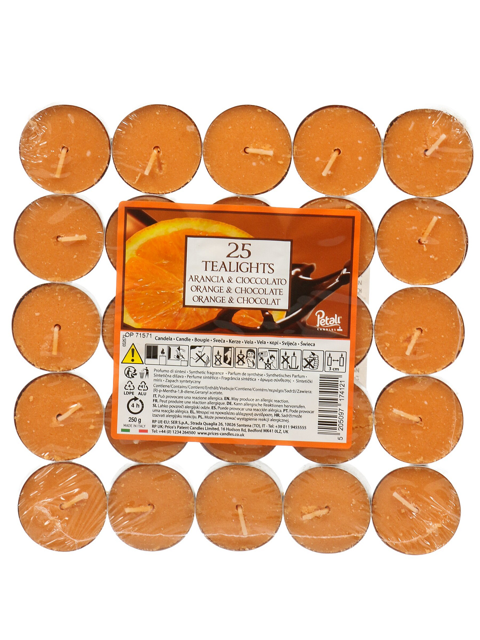 Свечи ароматизированные SER S.P.A Апельсин и Шоколад 2х4 см, 25 шт — создайте уют и аромат свежего цитруса с нотами шоколада для дома или подарка по выгодной цене.
