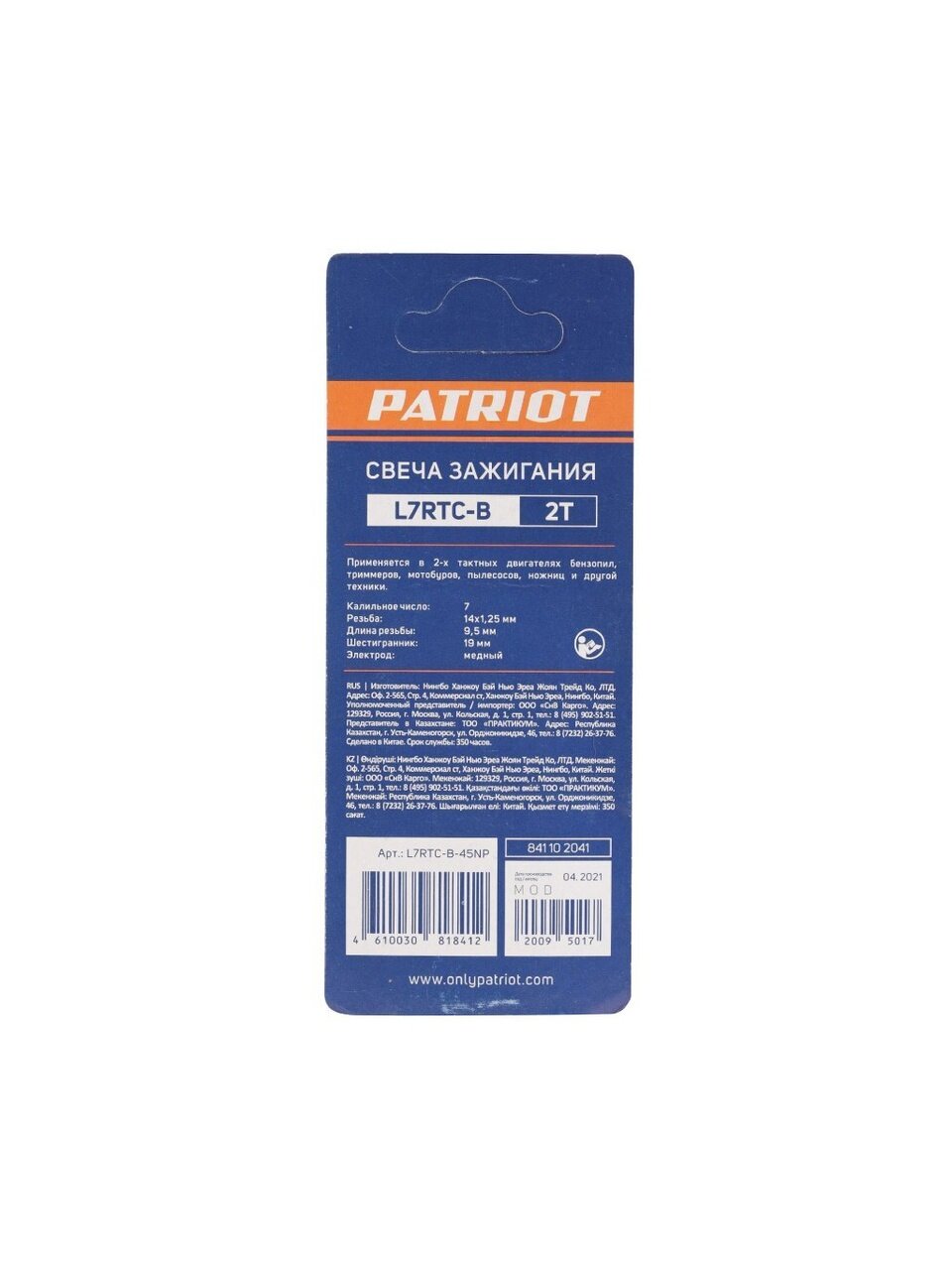 Свечи для двухтактных двигателей Patriot L7RTC имеют резистор и медный электрод, увеличивающий срок службы свечи.