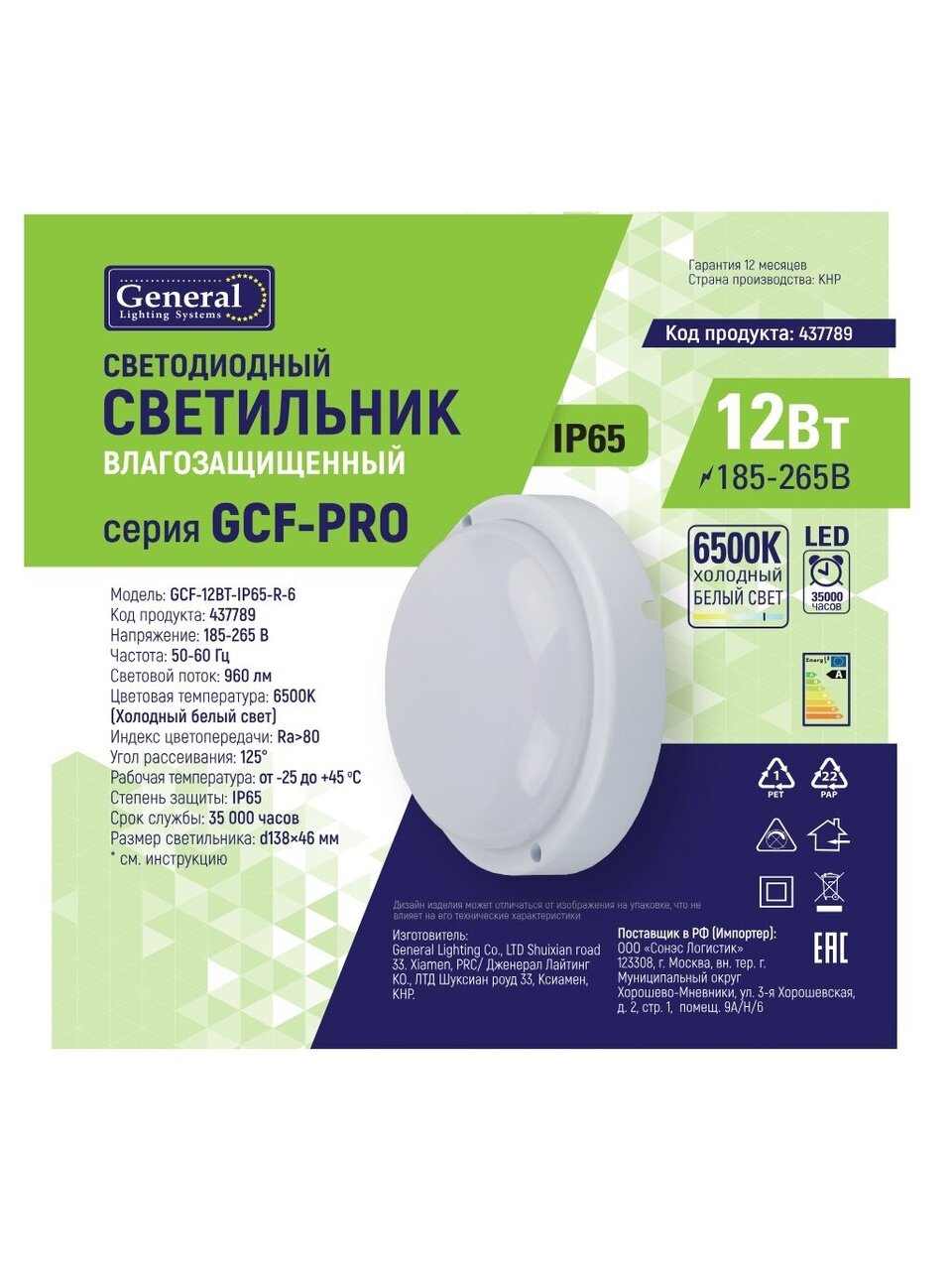 Светодиодный светильник ЖКХ GE 12 Вт, IP65 — экономичное и долговечное решение для освещения подъездов, дачи и производственных помещений. Яркий холодный свет 6500К, влагозащита IP65, срок службы 35 000 ч.