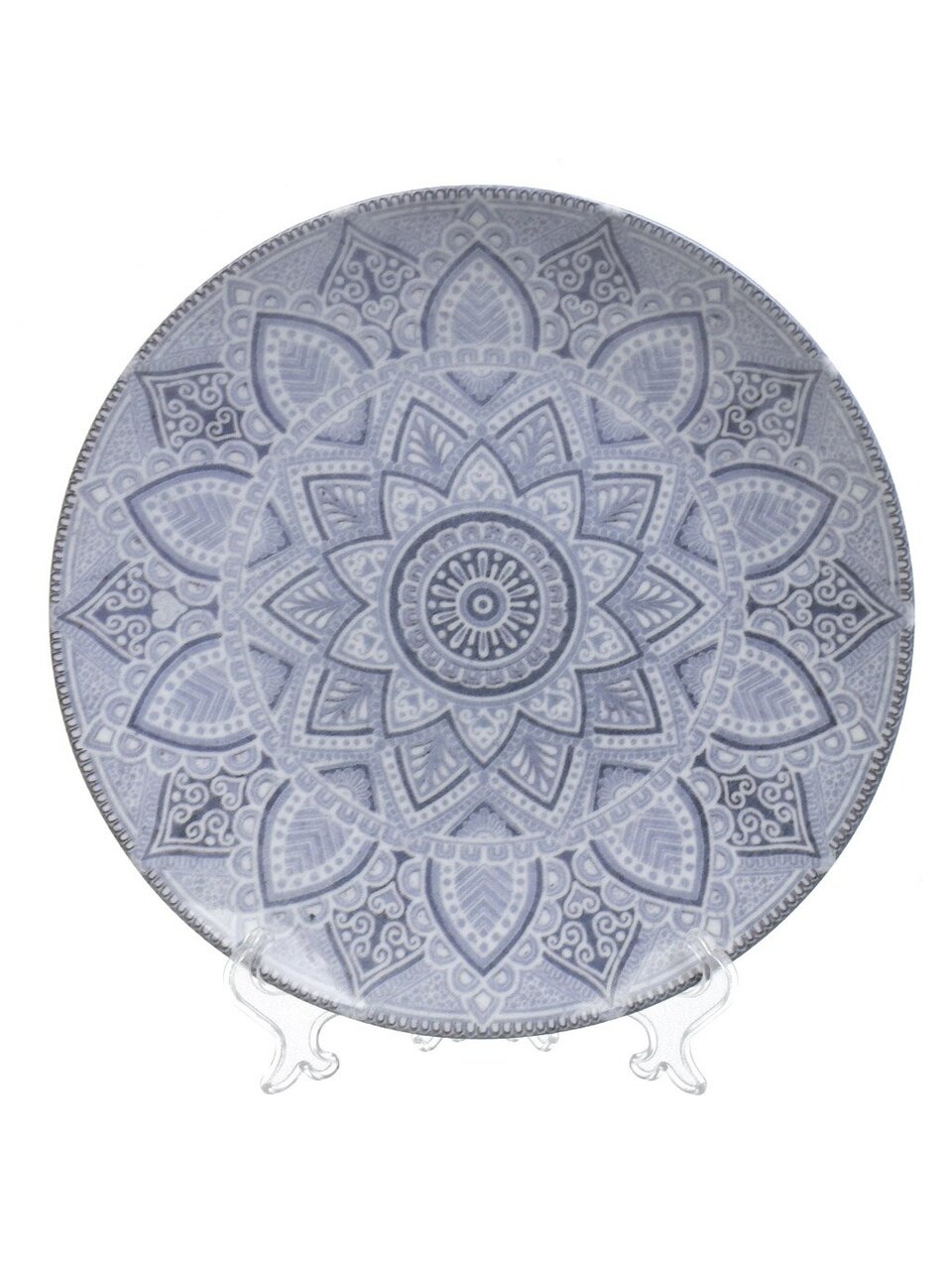 Тарелка обеденная фарфоровая 24 см Универсал Вавилон — стильная сервировка и долговечность для вашего дома, дачи или подарка. Серый фарфор с восточным орнаментом, подходит для СВЧ и посудомоечной машины.