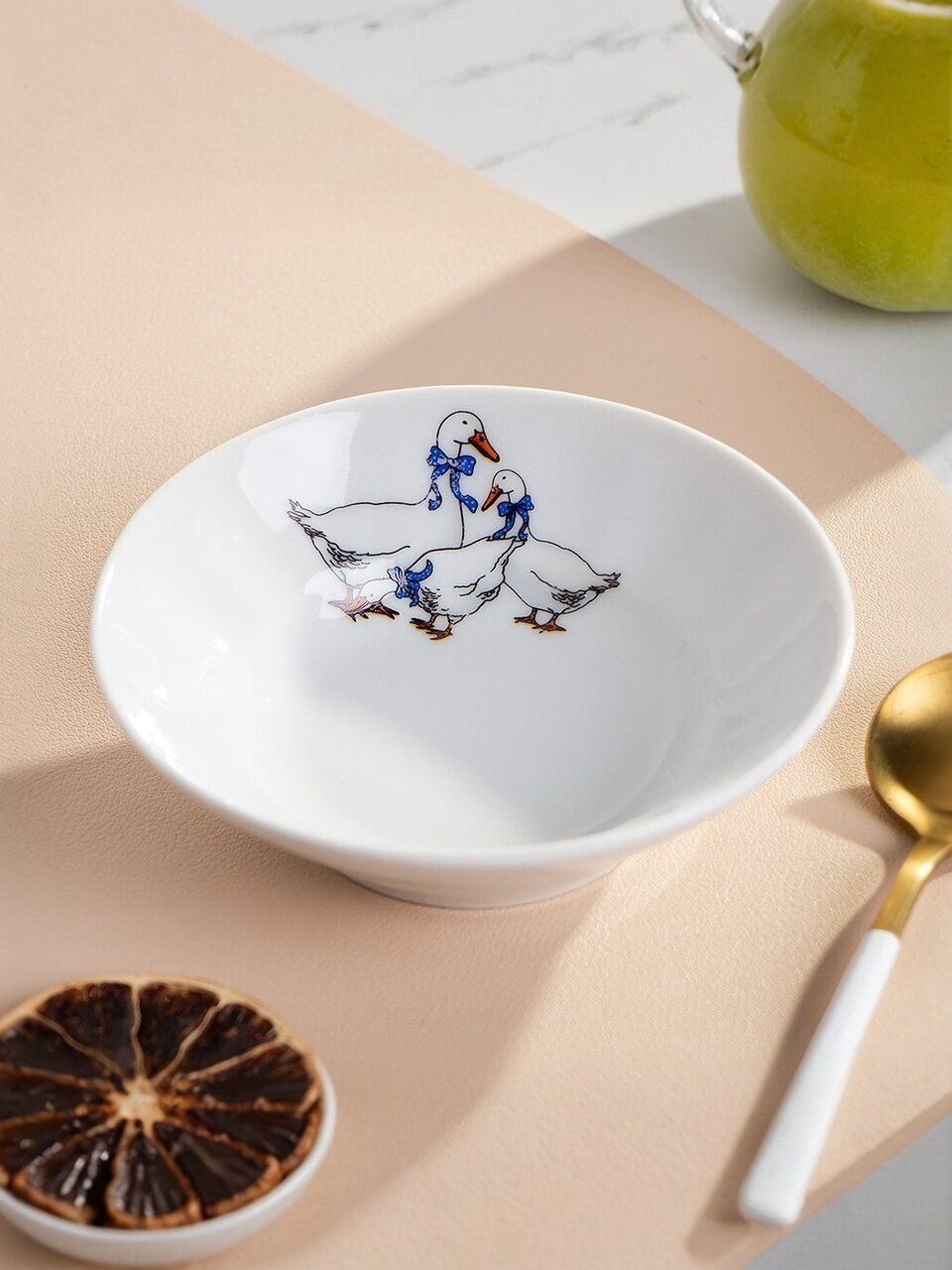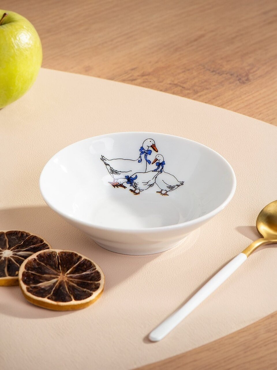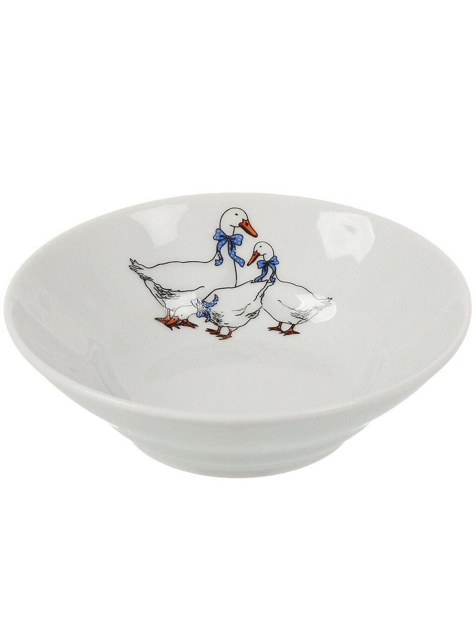 Оно выполнено из прочного фарфора, имеет эксклюзивный рисунок «Гуси» и подходит для частого использования дома, на даче или в подарок.