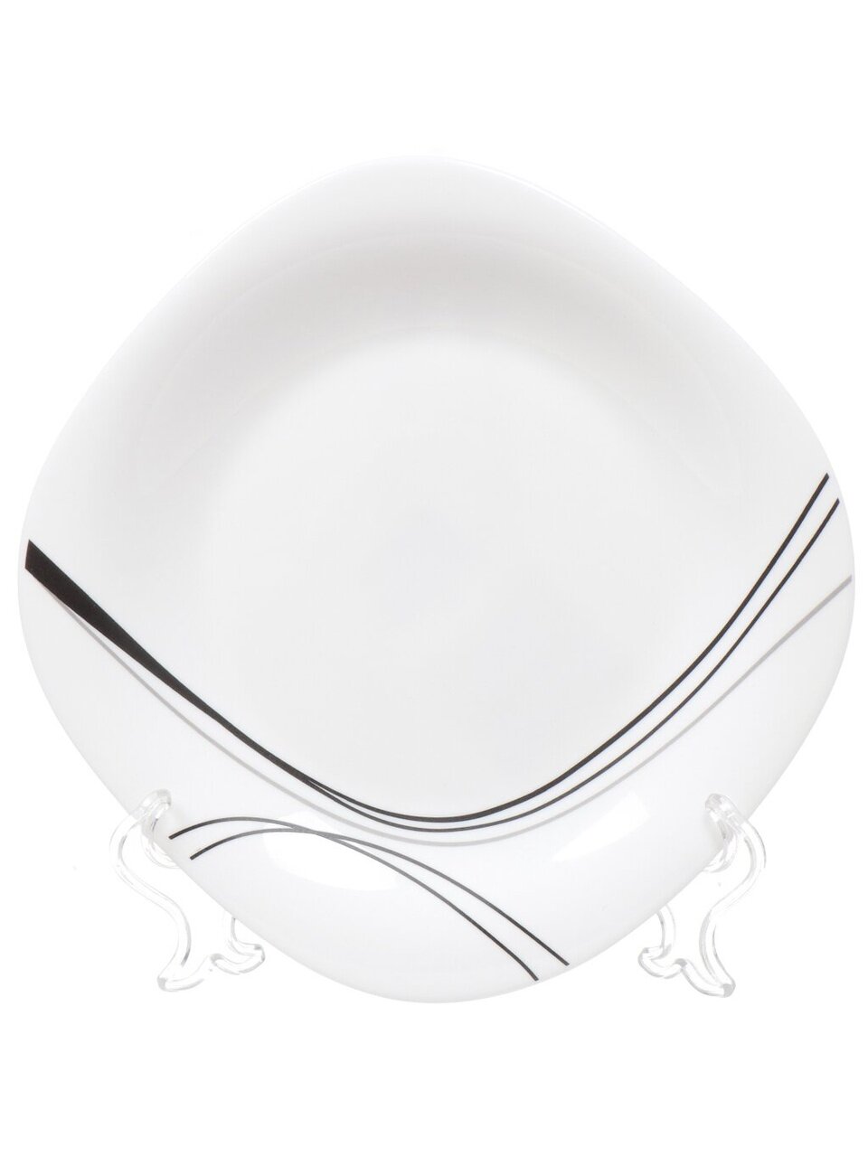 Диаметр — 19 см, форма — квадратная, материал — стеклокерамика, можно использовать в СВЧ, цвет — белый с рисунком.