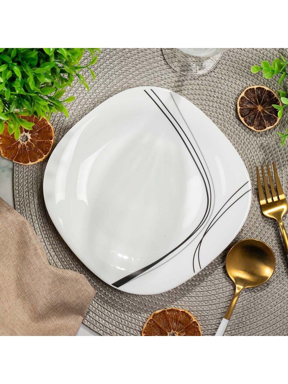 - Современный дизайн: квадратная форма и абстрактный узор коллекции «Токио» выделяют сервировку.