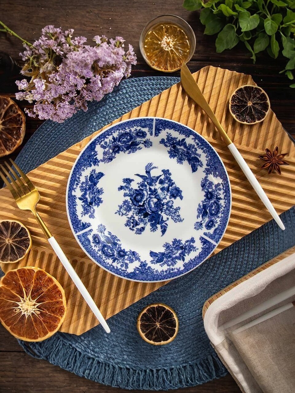 - Уникальный дизайн в стиле гжель — каждая тарелка с ярким синим узором и эксклюзивным орнаментом