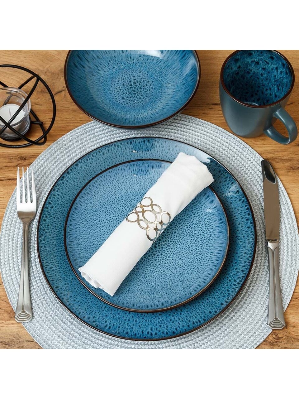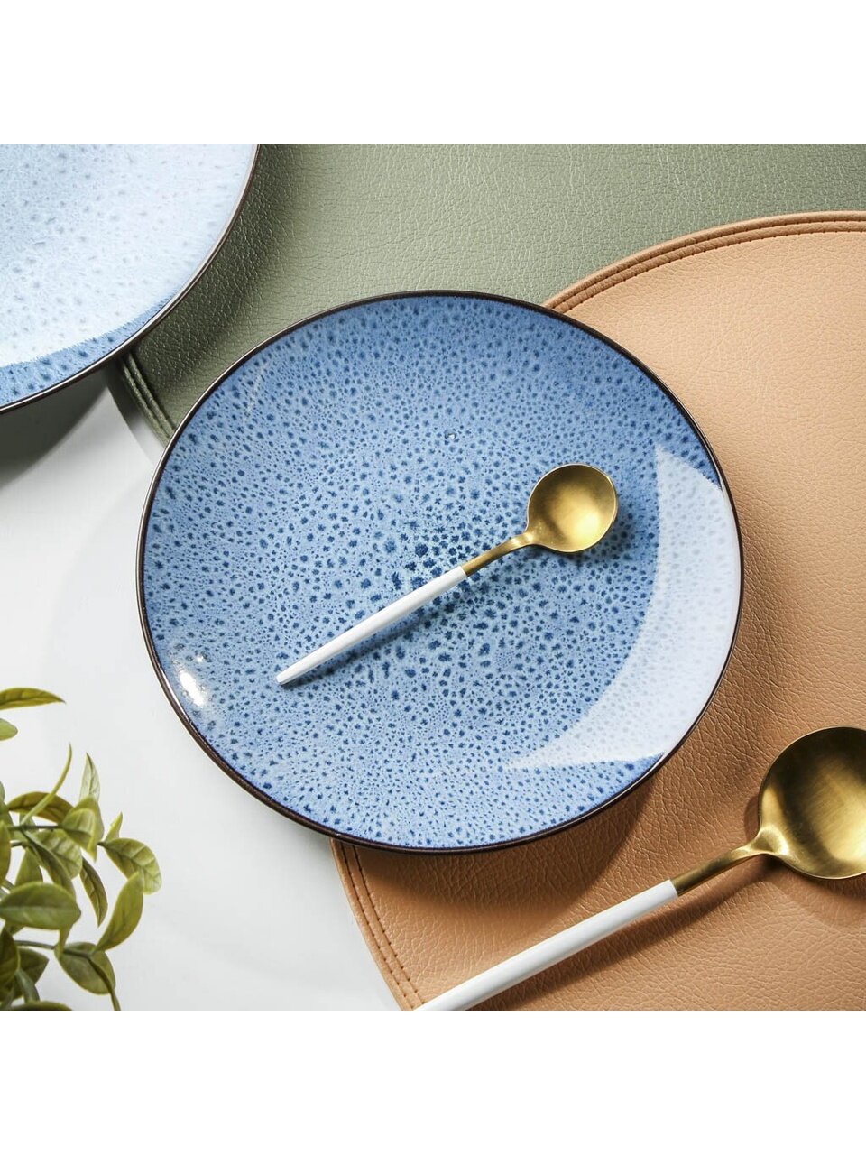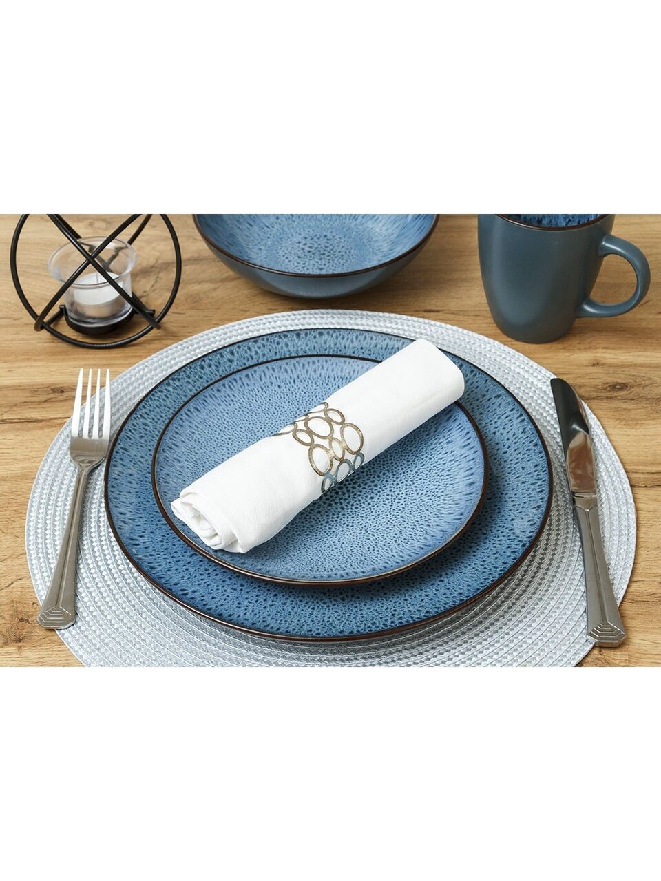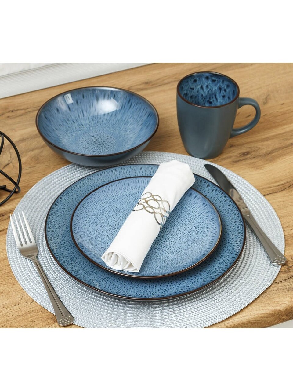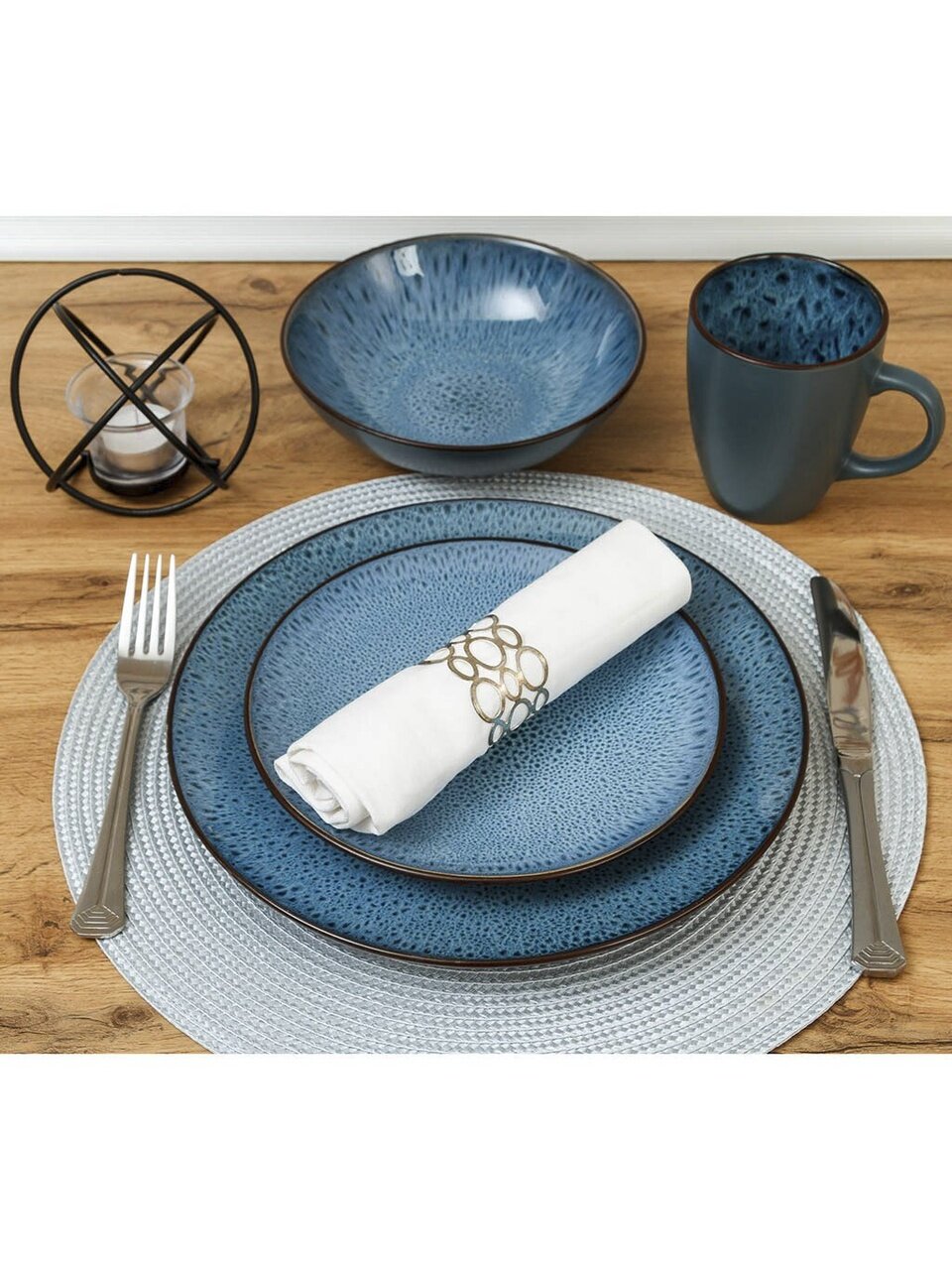 - Уникальный дизайн: глубокий синий цвет, современный узор в крапинку — акцент на индивидуальность вашей сервировки