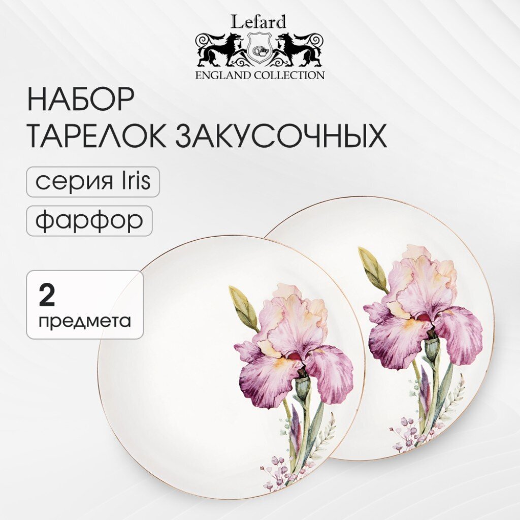 Премиум-набор из 2 фарфоровых тарелок Lefard Irises 23 см: изысканная сервировка, прочность и акцент на стиль для вашего дома или подарка.