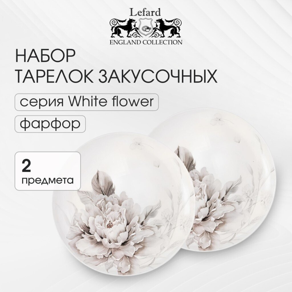 Премиальный набор закусочных тарелок Lefard «Белый цветок» — фарфор 20,5 см, 2 шт. Идеальный выбор для дома, дачи или подарка. Безупречный стиль и долговечность.