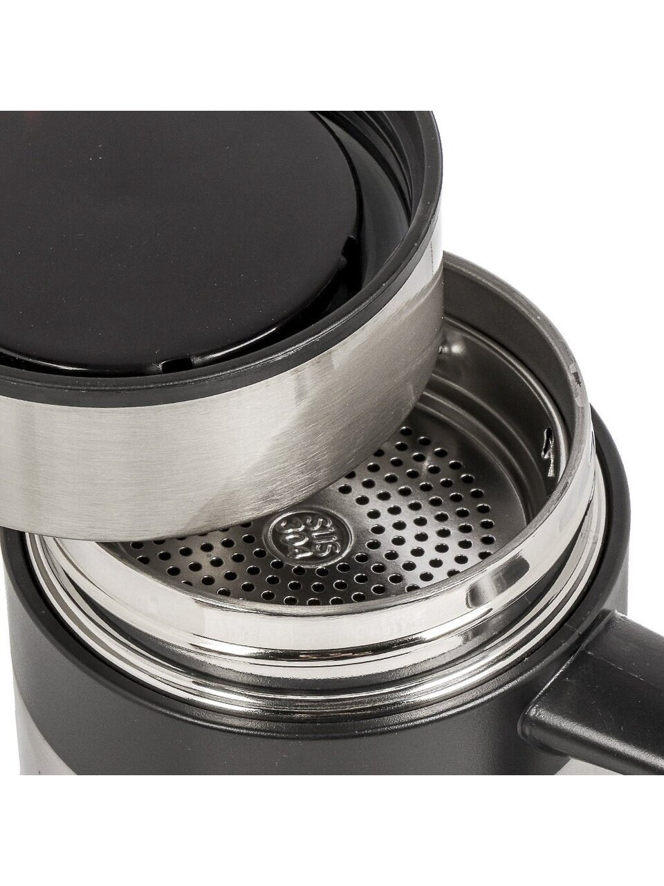 - Колба и корпус из прочной нержавеющей стали — не впитывает запахи, устойчива к ударам, легко моется.