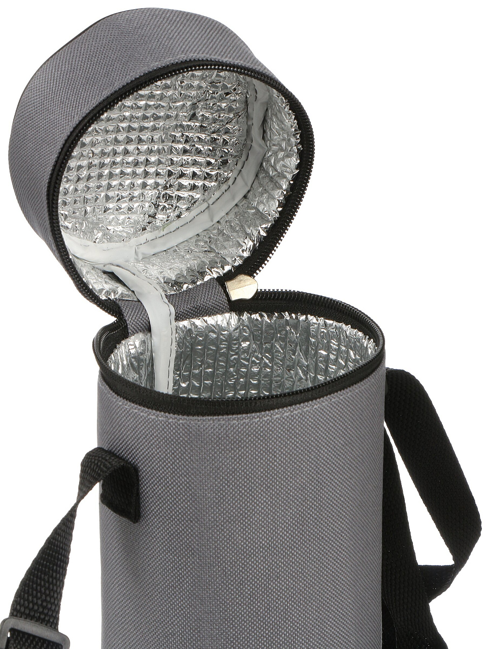 Объём — 0.75 л. Корпус и колба изготовлены из нержавеющей стали, материал устойчив к ударам и не впитывает запахи. В комплекте чехол для переноски.