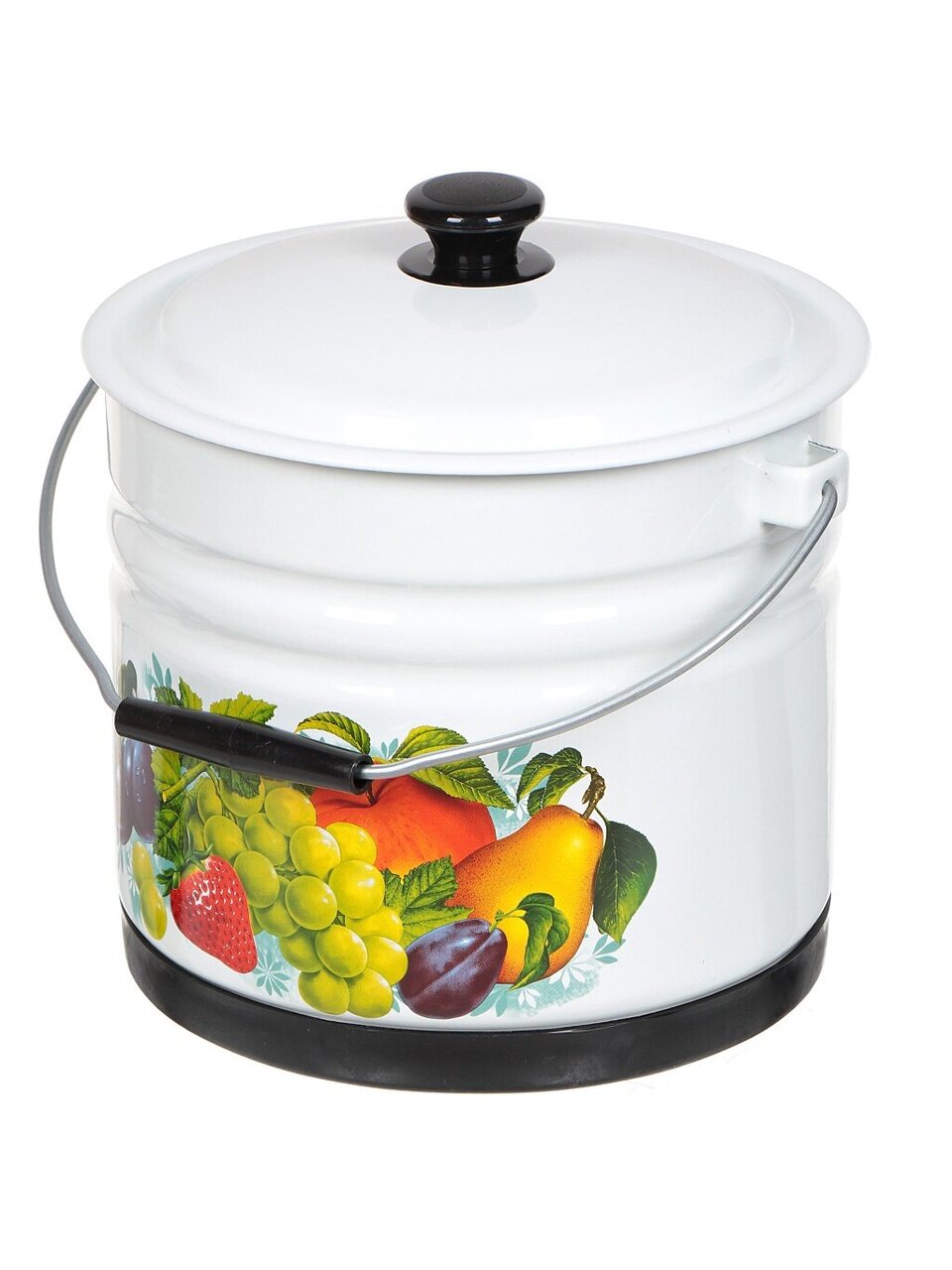 Эмалированное ведро объемом 10 литров с крышкой и поддоном — практичный и стильный выбор для дома, дачи, кухни или хозяйственных нужд. Классический цилиндрический дизайн, универсальные цвета белый и слоновая кость, а также яркий декор с фруктами делают изделие не только функциональным, но и украшением любого интерьера. Прочное покрытие из качественной эмали защищает стальную основу от коррозии и механических повреждений, обеспечивая долгий срок службы и легкость в уходе. Благодаря вместимости 10 литров ведро идеально подходит для хранения и транспортировки воды, приготовления домашних заготовок, сбора урожая, хранения пищевых продуктов или удобного выполнения хозяйственных работ.