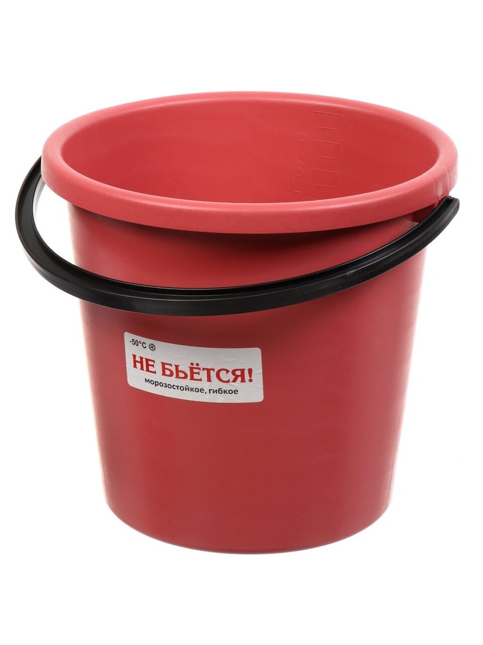 Ведро изготовлено из особопрочного пластика, устойчивого к ударам, деформациям и перепадам температур. Вес — 0,42 кг, объём — 10 литров.