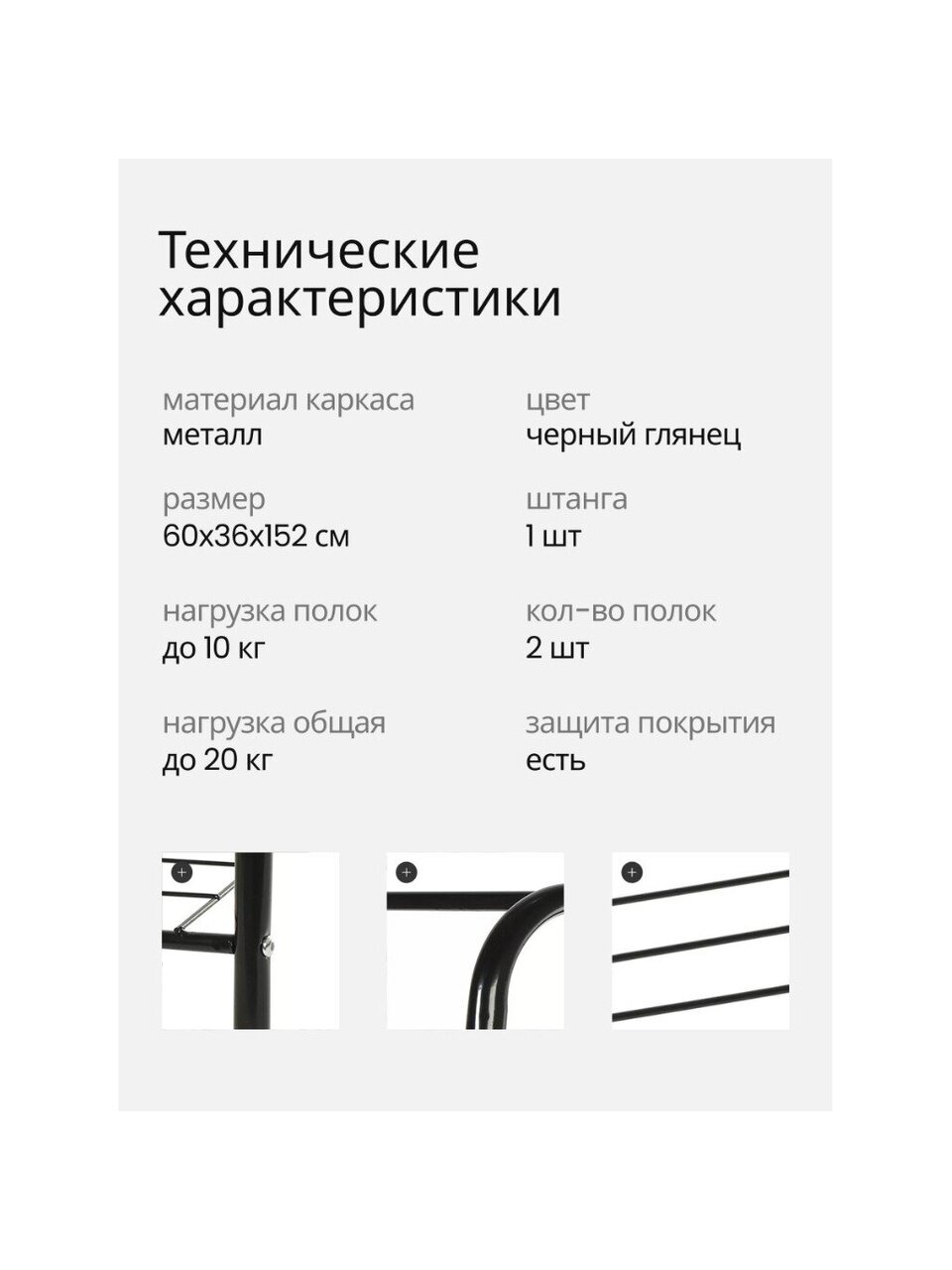 - Компактные размеры: благодаря ширине 60 см, глубине 36 см и высоте 152 см, вешалка легко разместится даже в небольших помещениях.