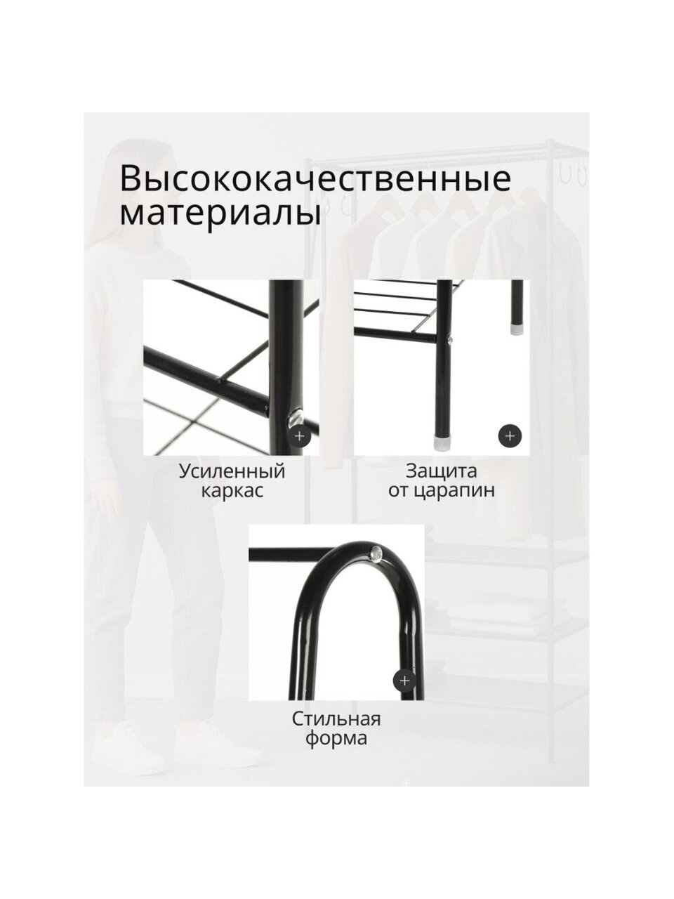 Эта вешалка создана для тех, кто ценит стиль и практичность. Ее черный цвет идеально впишется в любой интерьер, добавляя нотку элегантности и современности. Металлический каркас гарантирует долговечность и устойчивость, что делает вешалку надежным выбором для вашего дома.