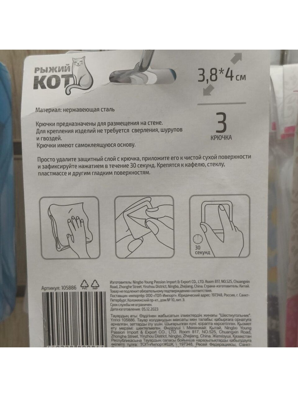Вы можете приобрести «Набор крючков 3 крючка, самоклеящийся, шестиугольные, настенный, нержавеющая сталь, 105886» и другие товары в нашем интернет-магазине в Ельце по низким ценам и с бесплатным самовывозом.