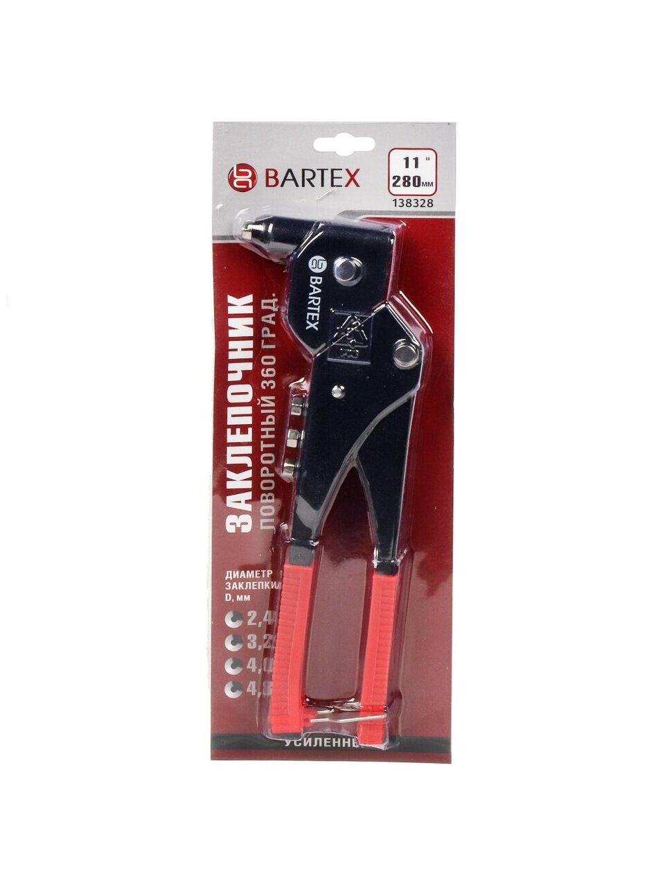 Вы можете приобрести «Заклепочник 280 мм, 2.4-3.2-4-4.8 мм, усиленный, поворотный, 360°, Bartex, D0721А/HR3000» и другие товары в нашем интернет-магазине в Казани по низким ценам и с бесплатным самовывозом.